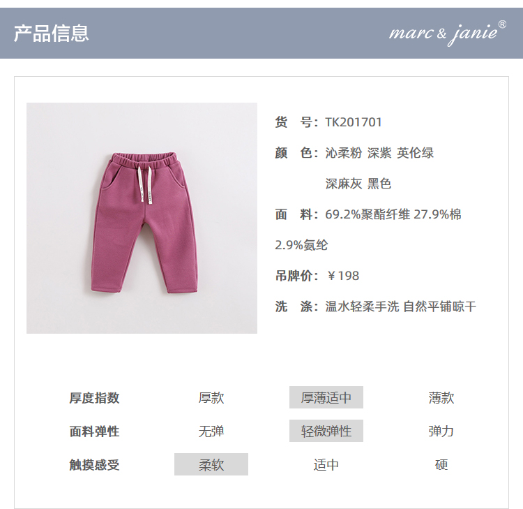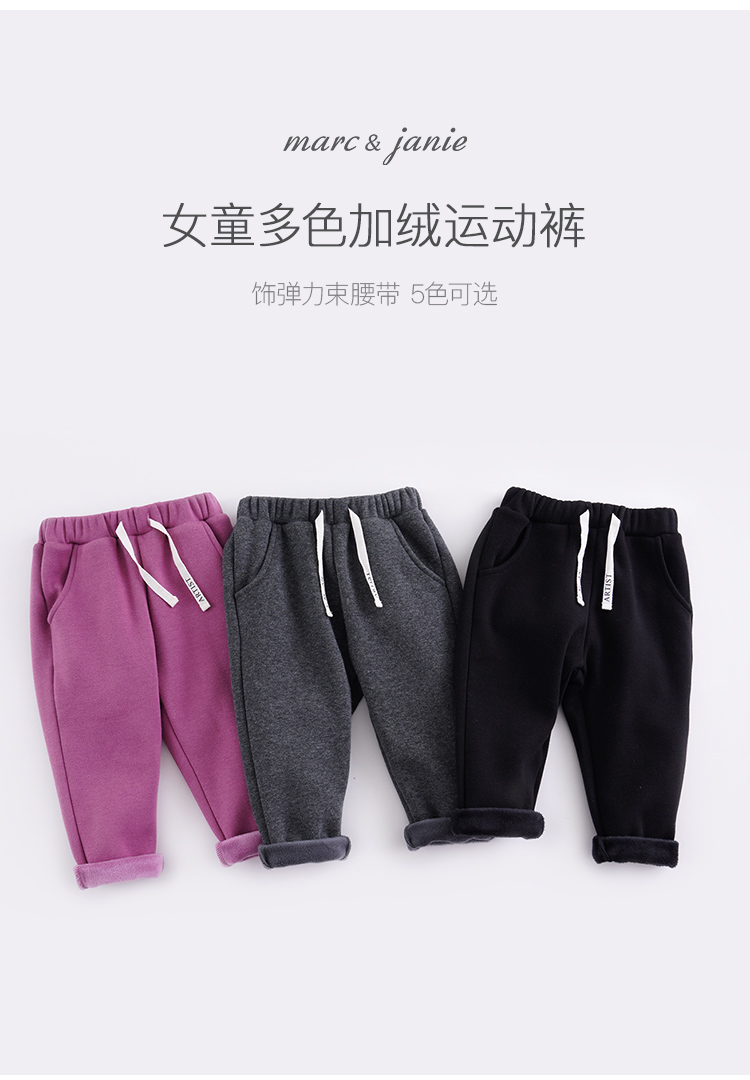 马克珍妮秋冬装男女童加绒运动裤 儿童长裤 宝宝裤子201701