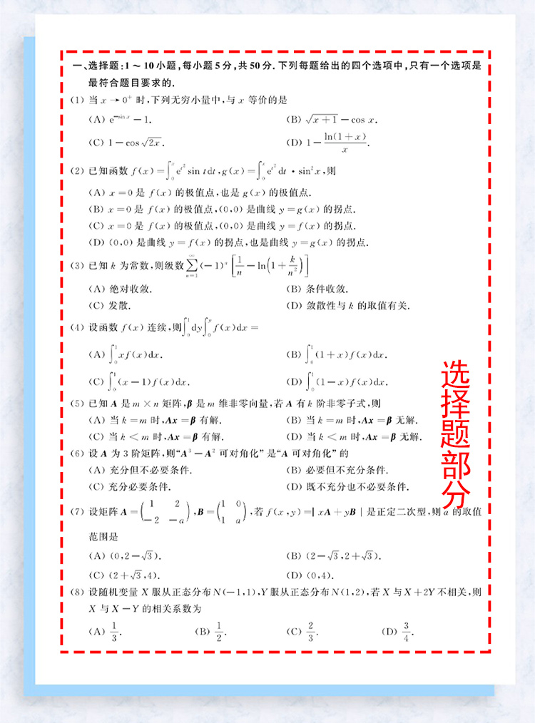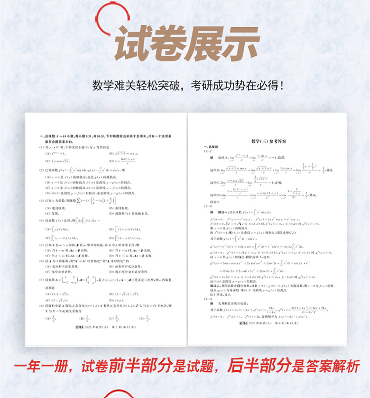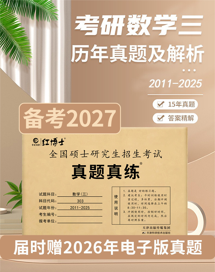 2027考研数学三历年真题试卷2011-2025十五年张天德303答案解析 活页试卷 红博士品牌直营