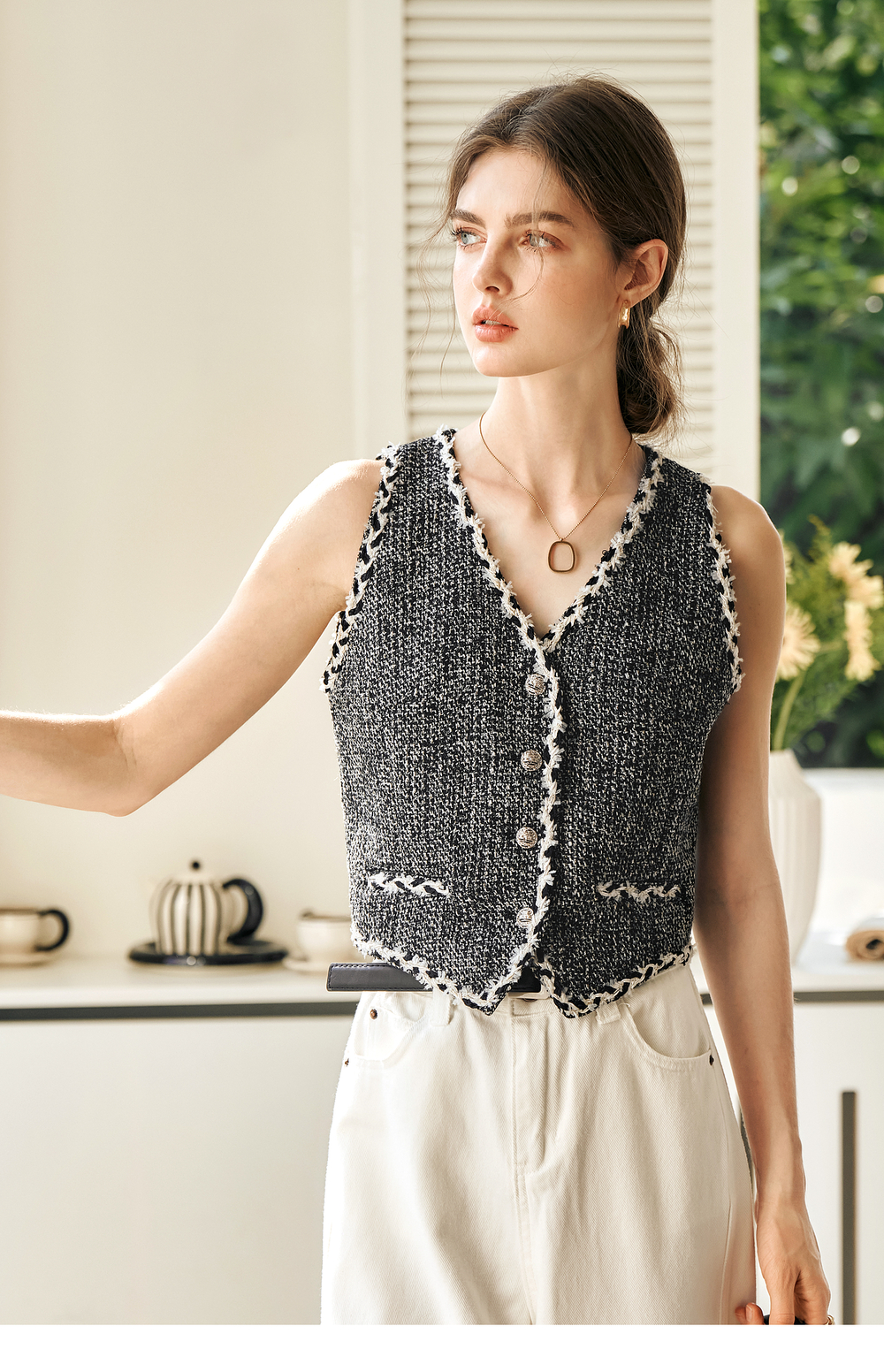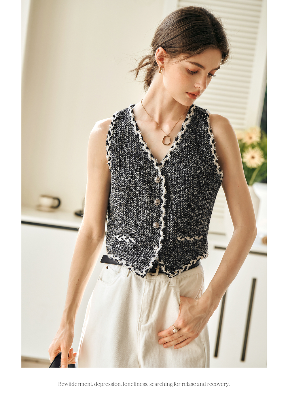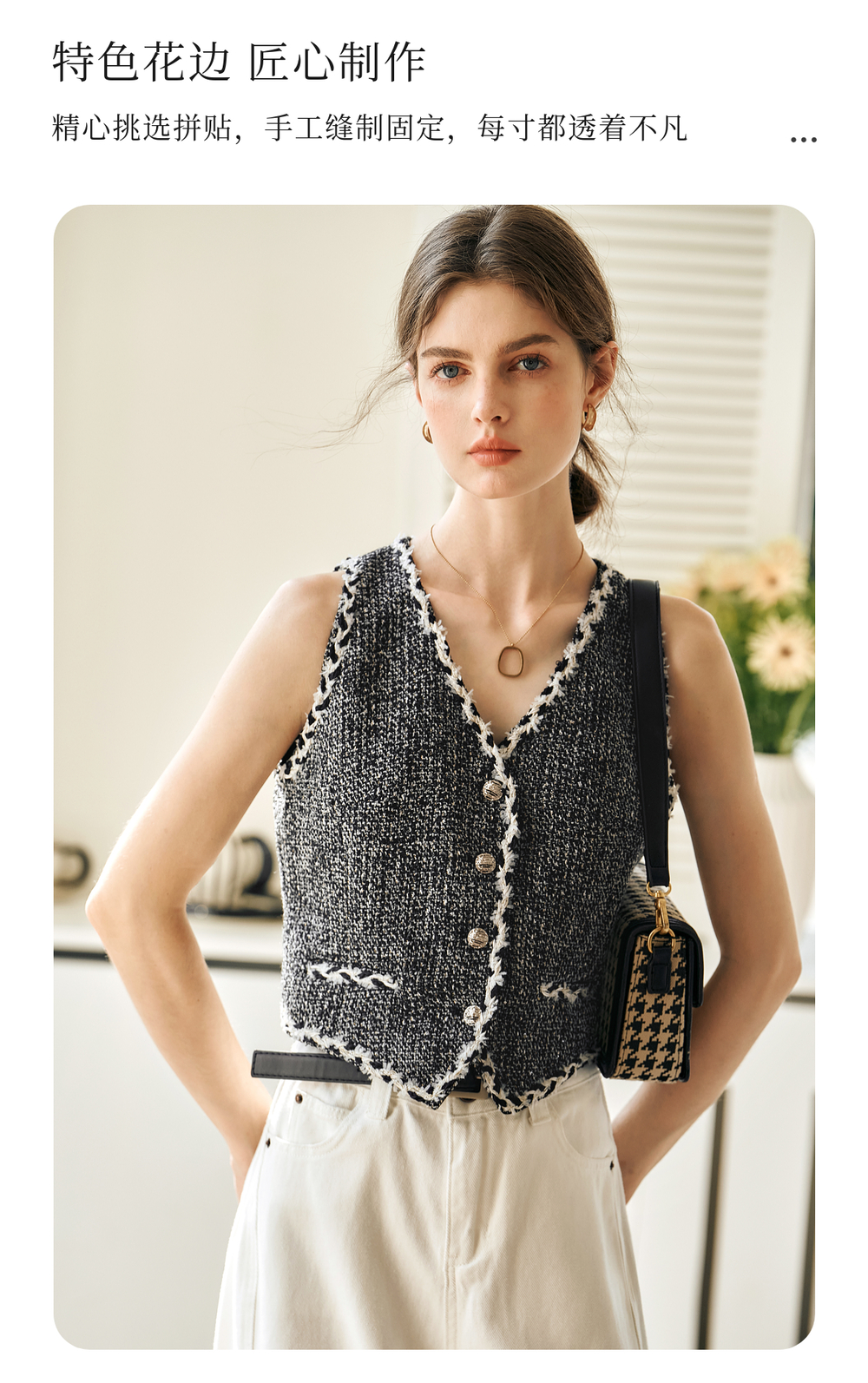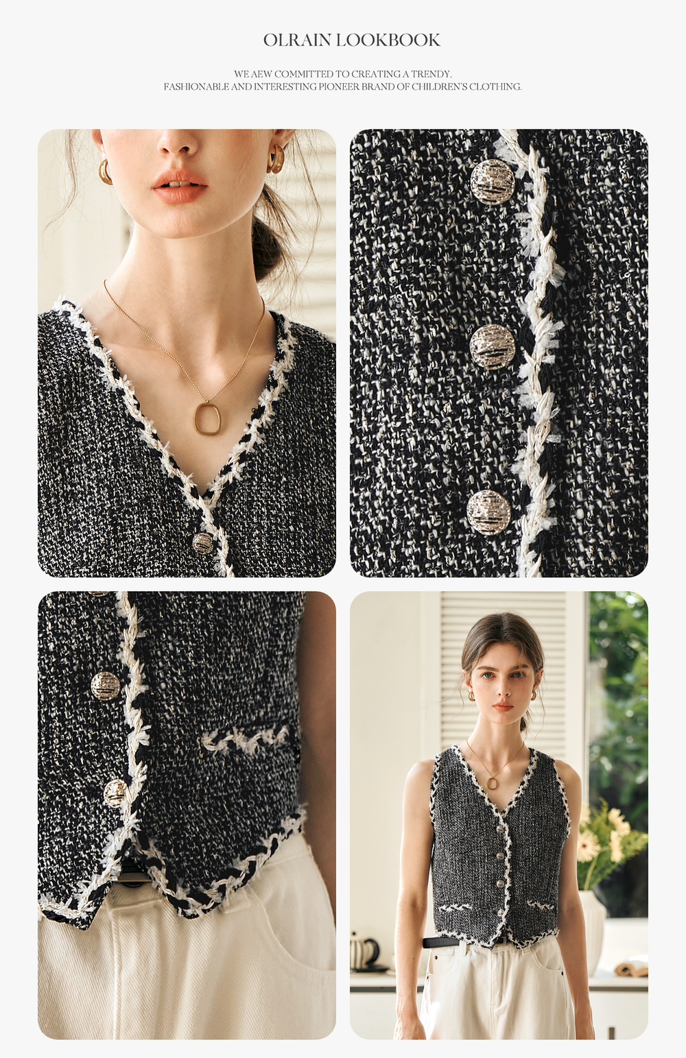 OLrain欧芮儿法式V领马甲女春季2025年新款无袖小香风撞色边上衣