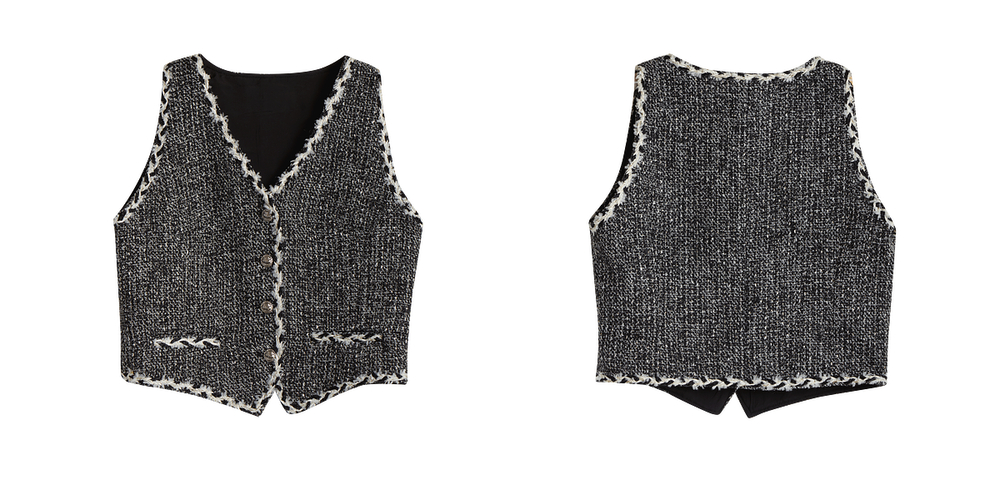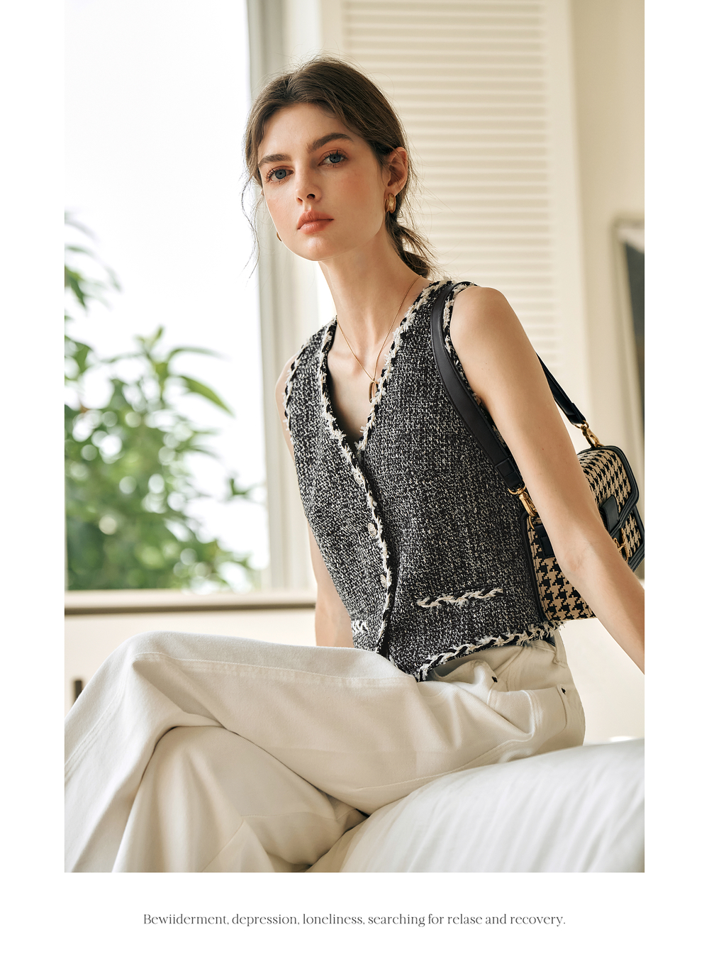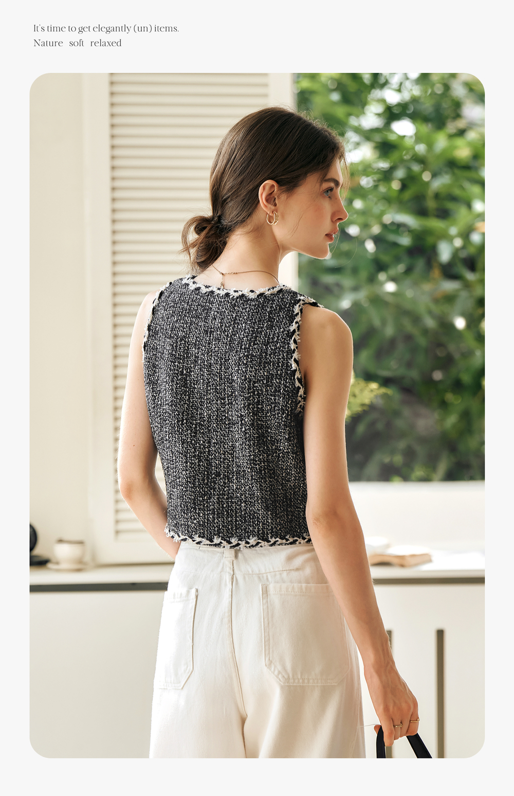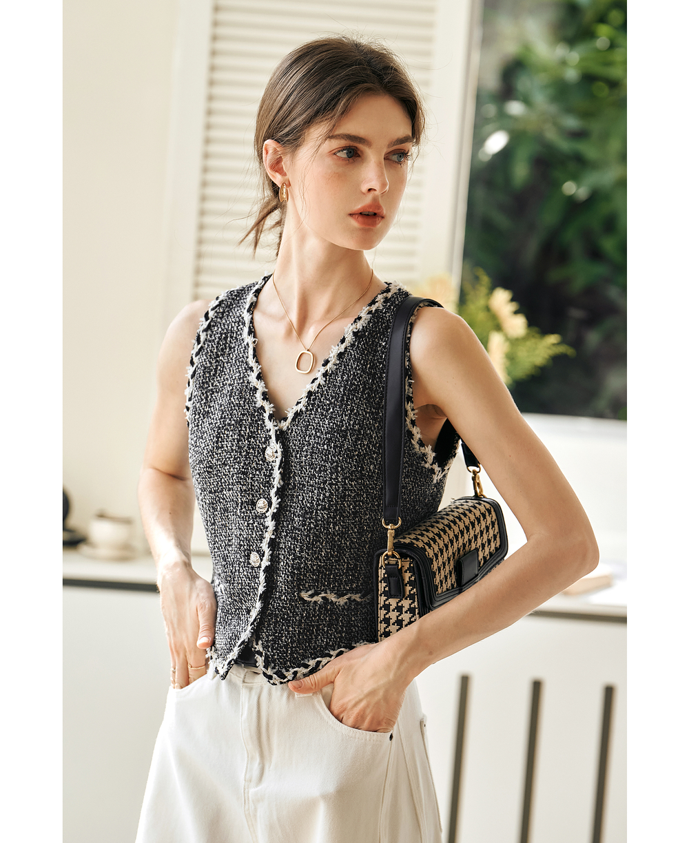 OLrain欧芮儿法式V领马甲女春季2025年新款无袖小香风撞色边上衣