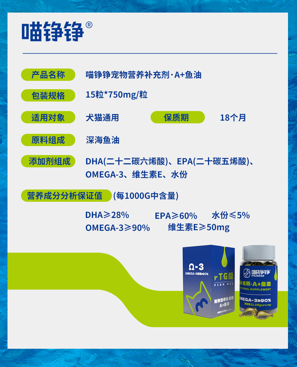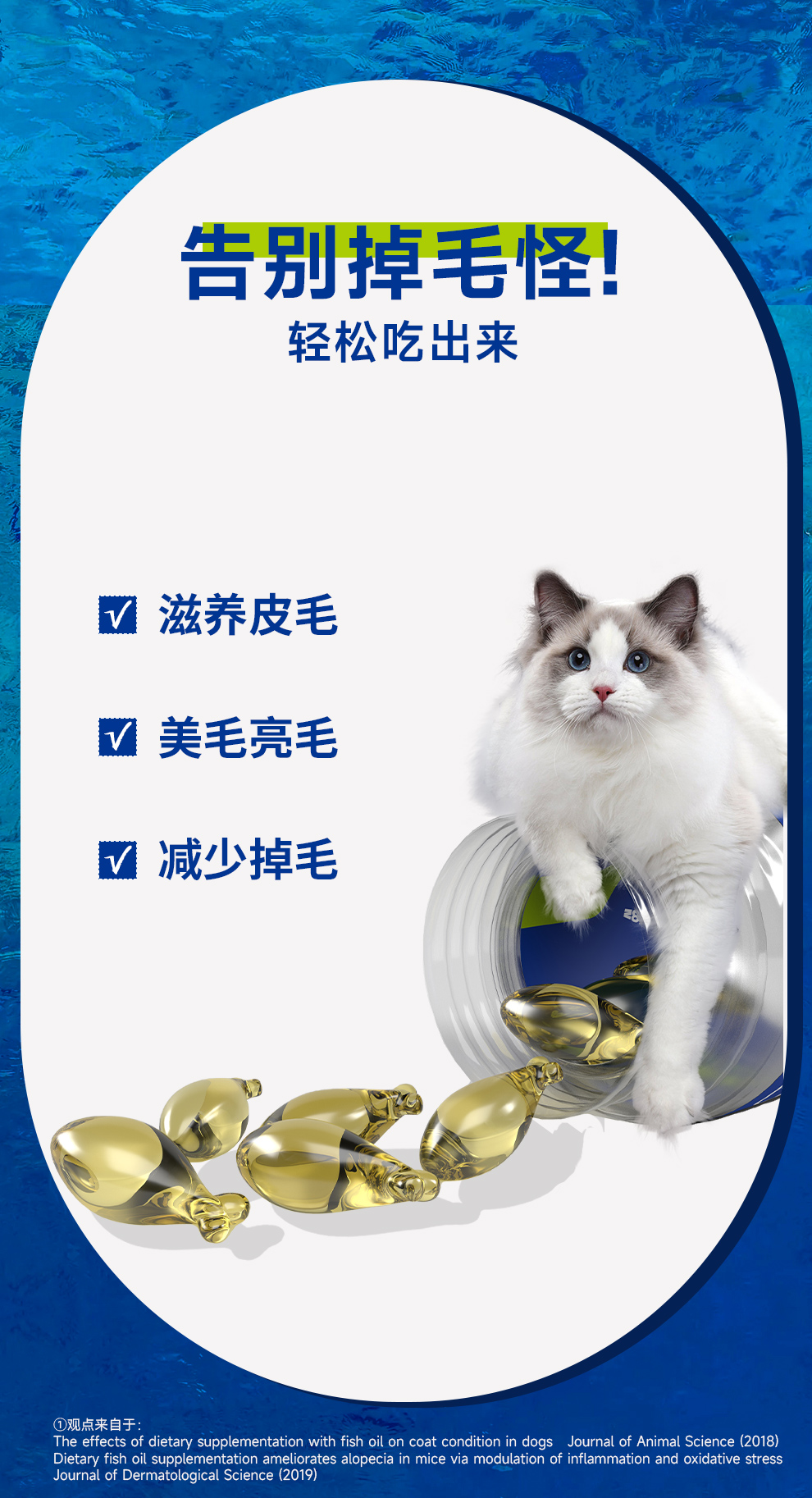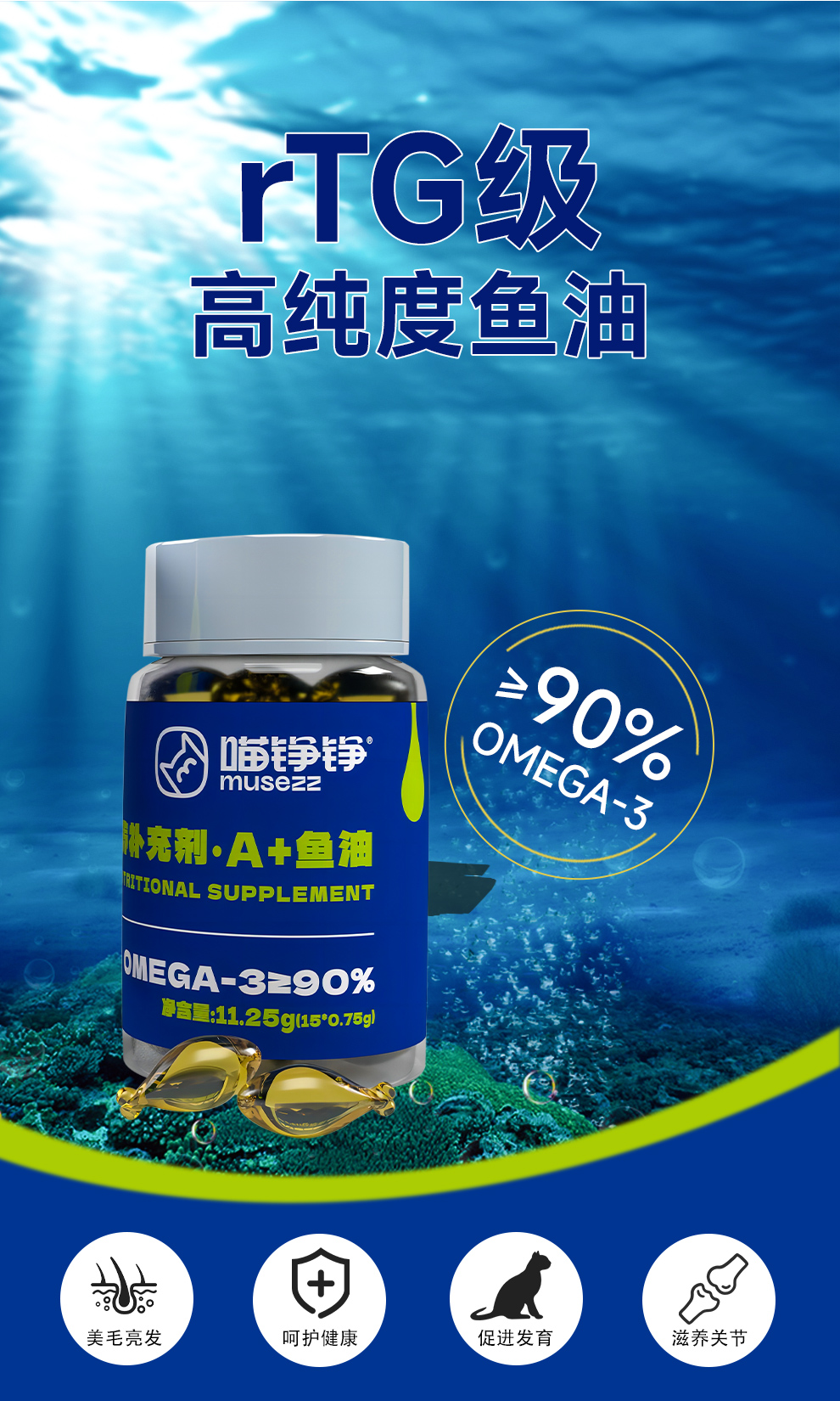 喵铮铮RTG深海鱼油 15粒/瓶 卵磷脂美毛亮发 90%Omega3防掉毛