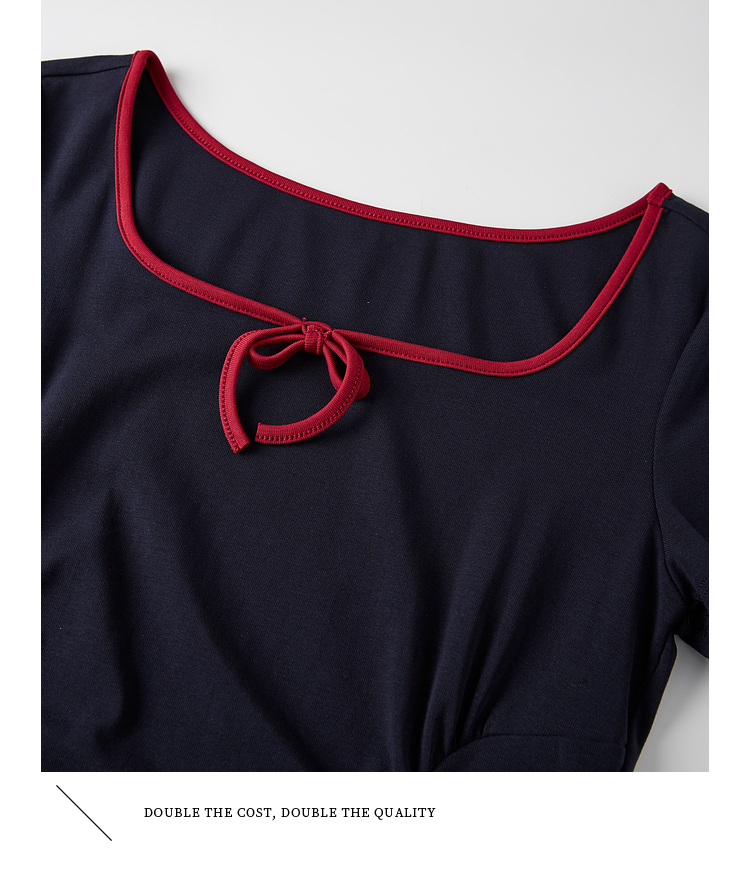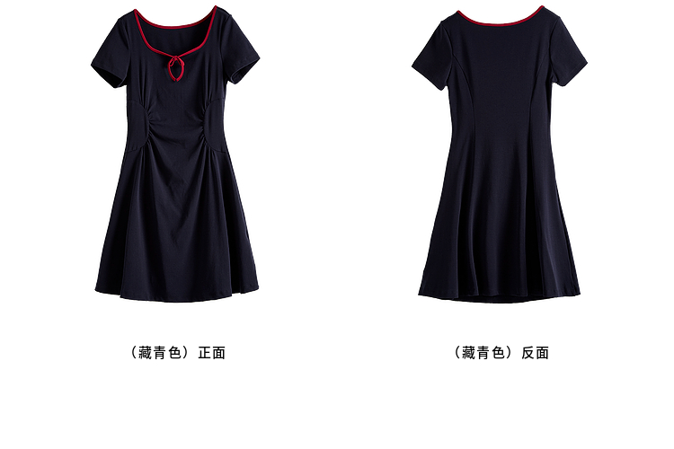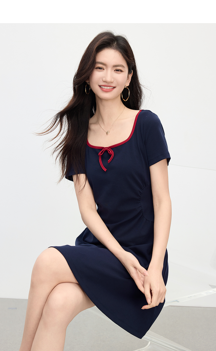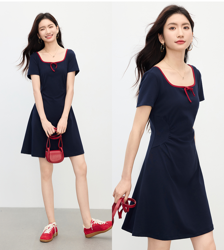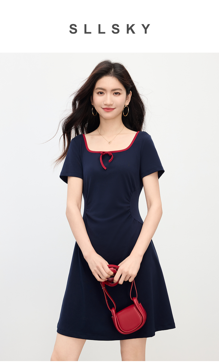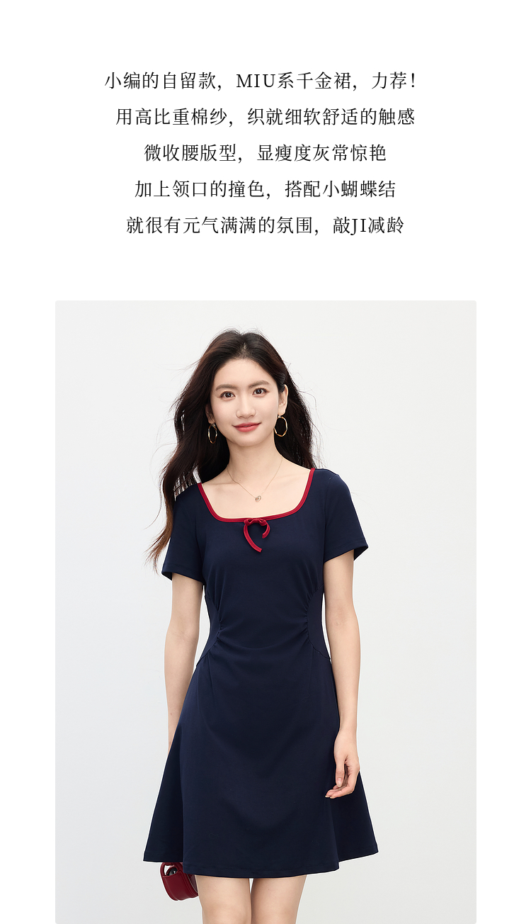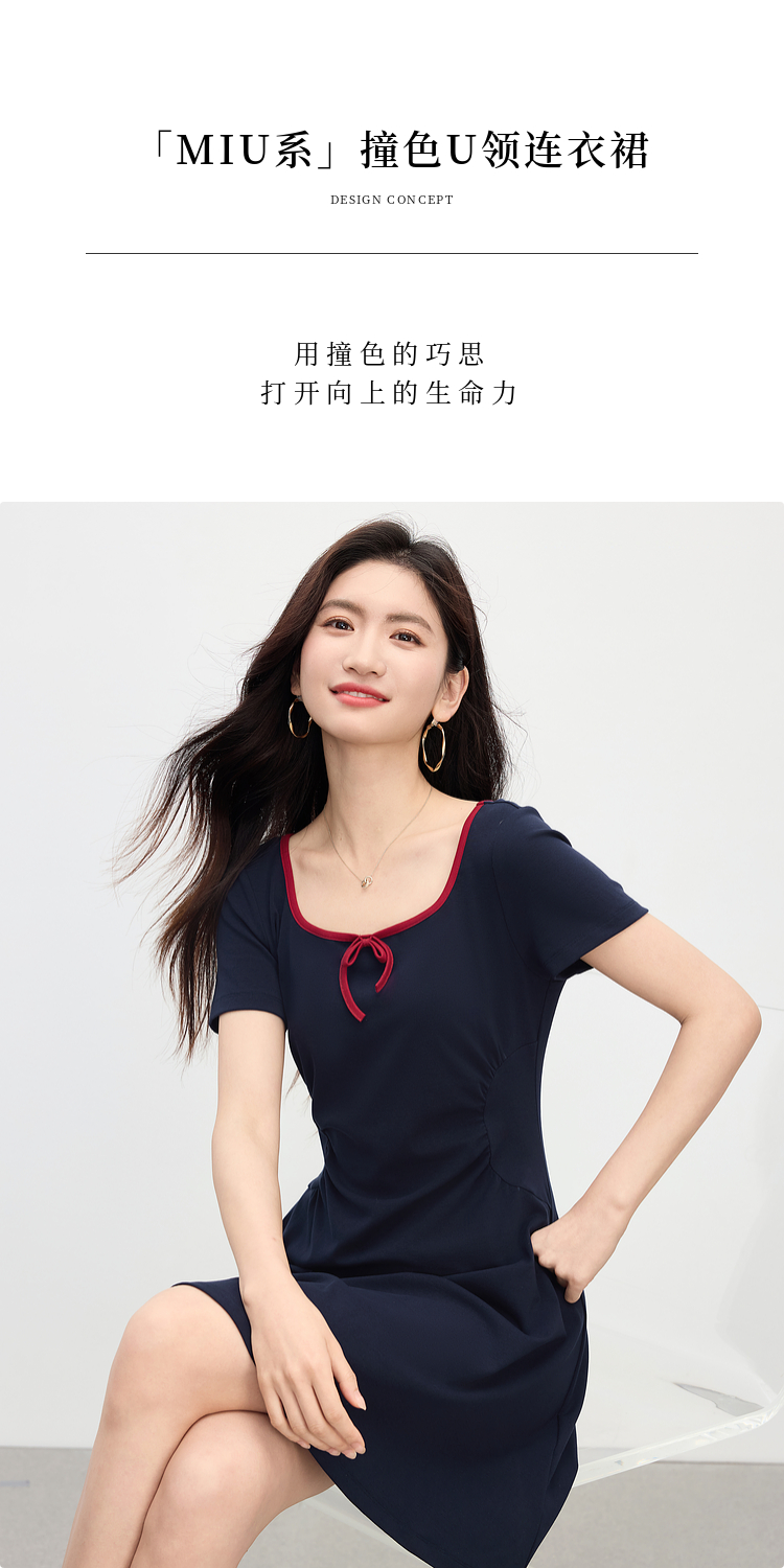 【专属特价】熙世界MIU系撞色方领连衣裙女夏2025年新款小个子显瘦收腰A字裙子