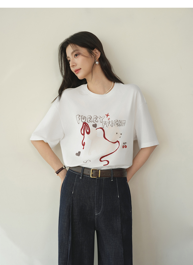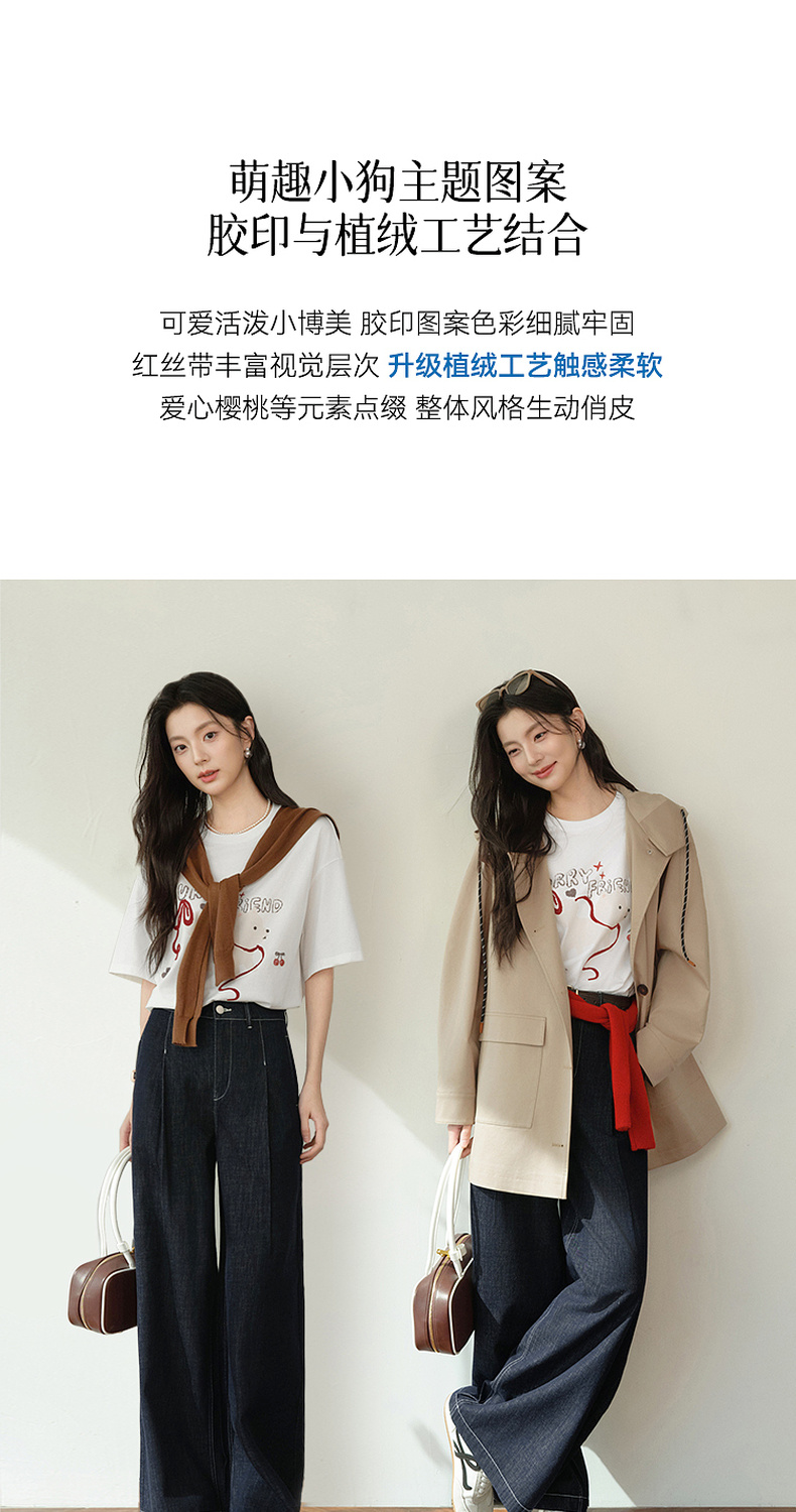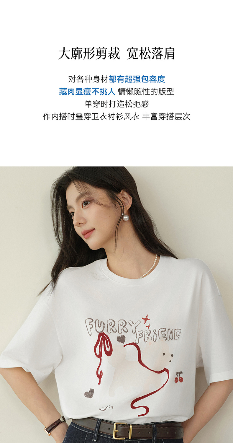 【严选】【好运汪】诗凡黎狗狗印花凉感T恤2026春新款宽松落肩显瘦短袖女7H2200301