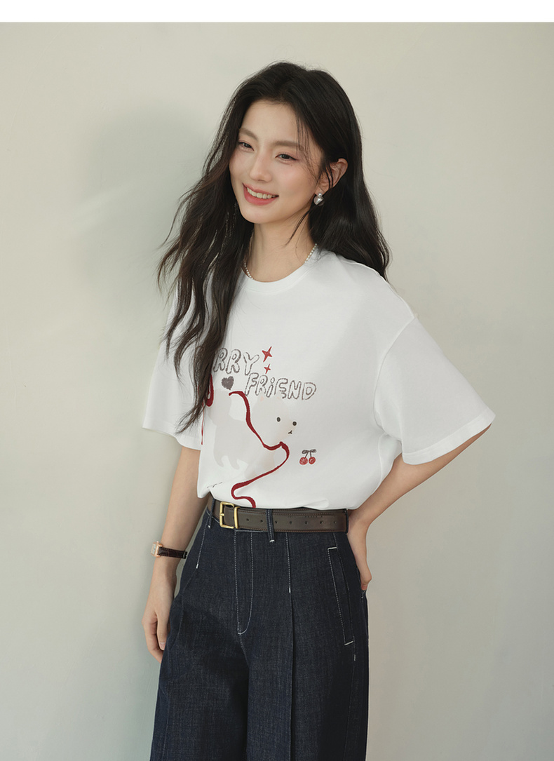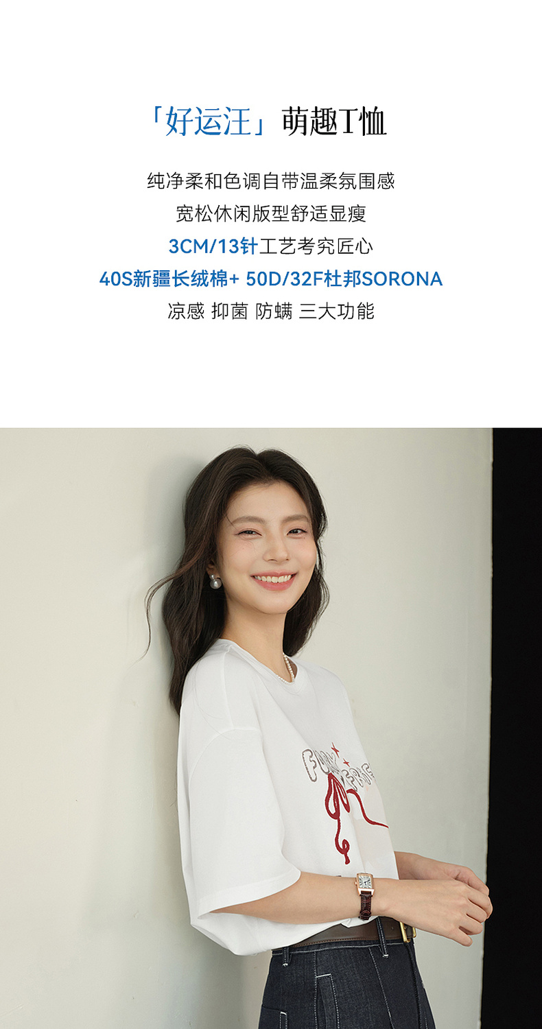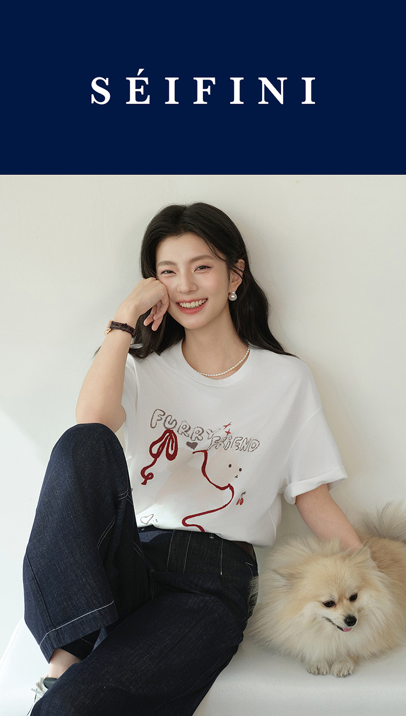 【严选】【好运汪】诗凡黎狗狗印花凉感T恤2026春新款宽松落肩显瘦短袖女7H2200301