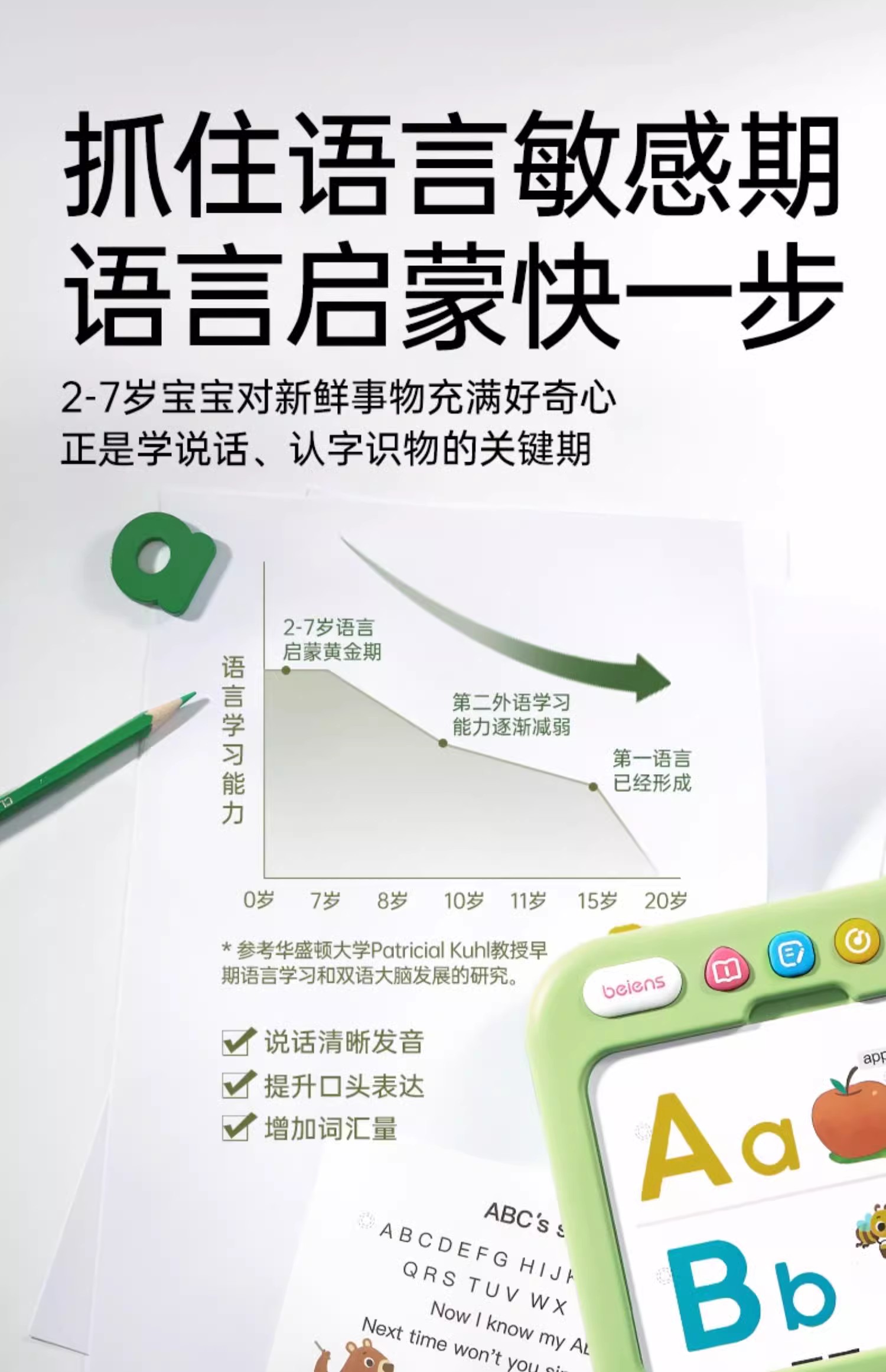 贝恩施小恐龙早教机双语学习机儿童思维逻辑训练机幼儿卡片点读机