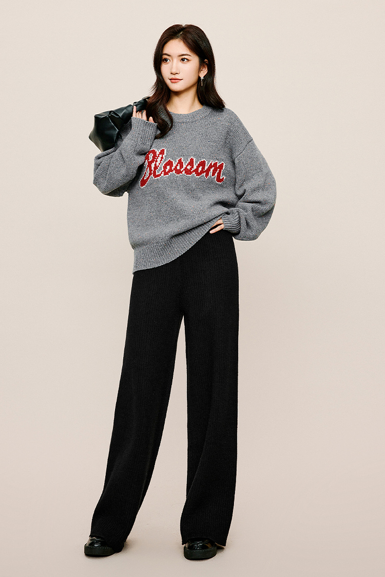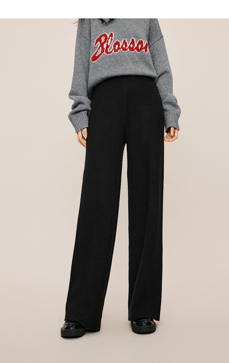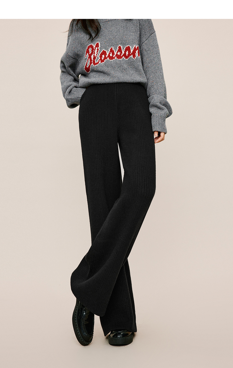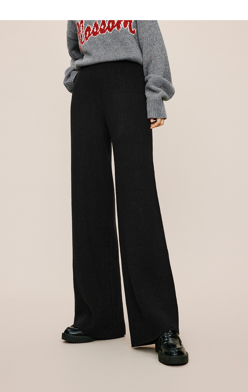 【严选】伊芙丽冬休闲坑条阔腿裤1EA952511