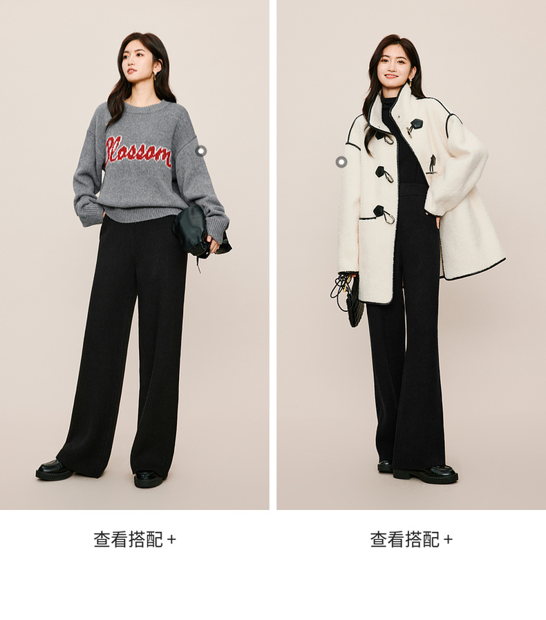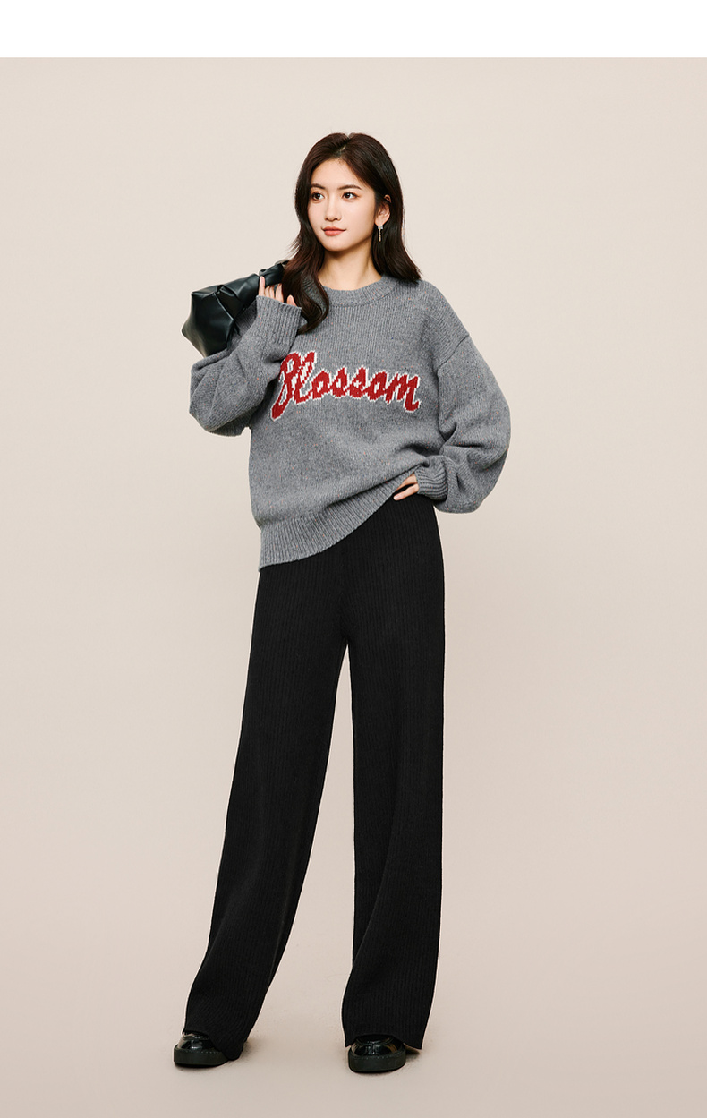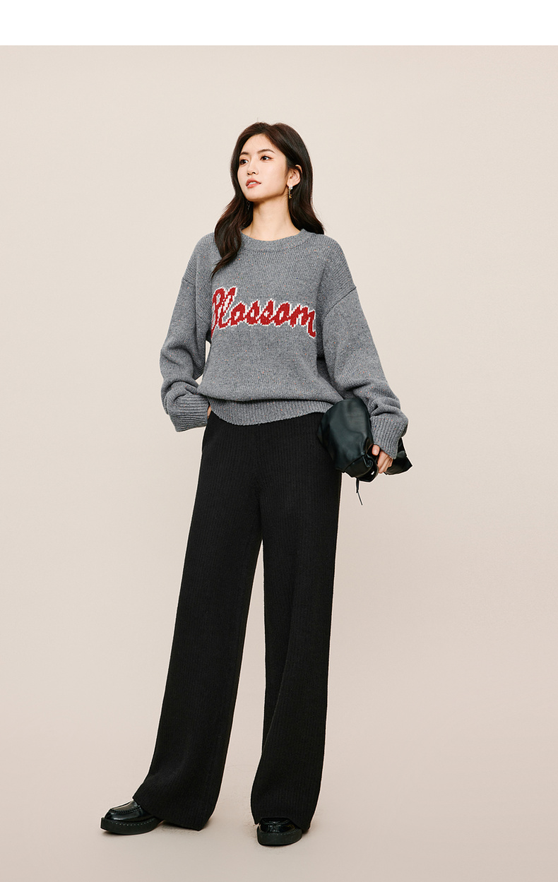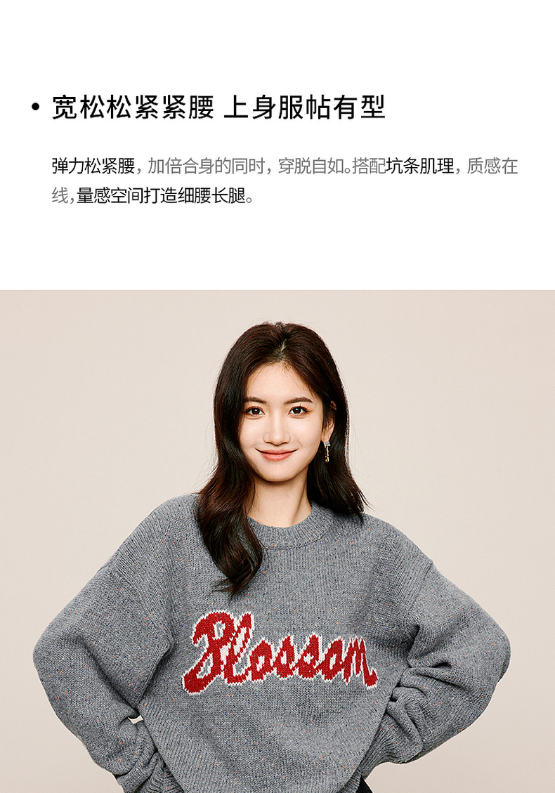 【严选】伊芙丽冬休闲坑条阔腿裤1EA952511