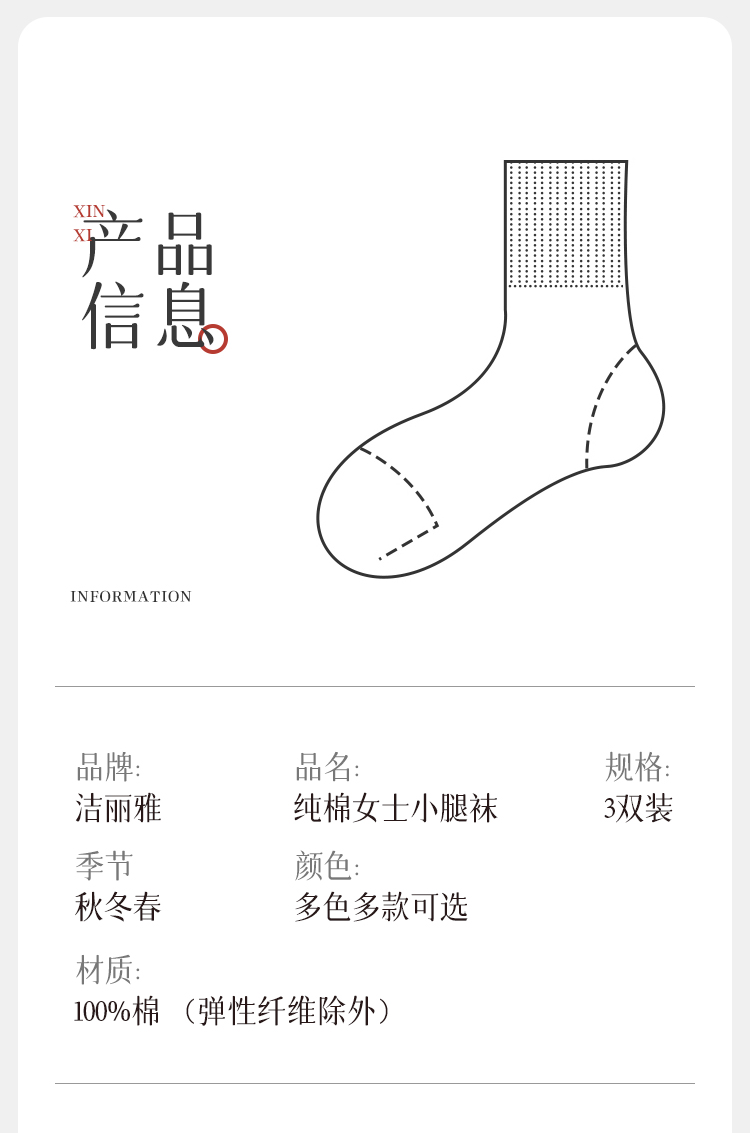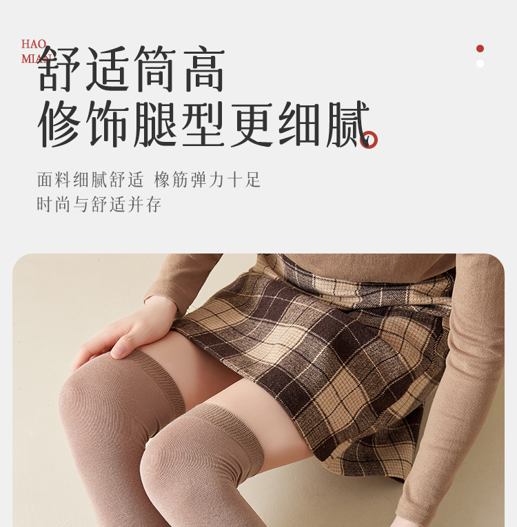洁丽雅3双装长筒过膝女袜高弹亲肤学院风时尚潮流女袜甜美袜子女