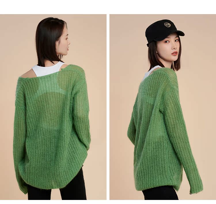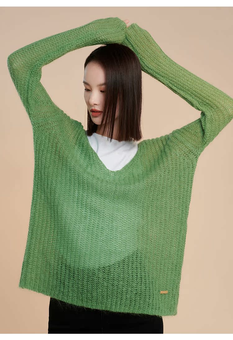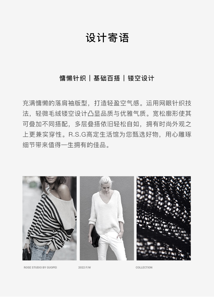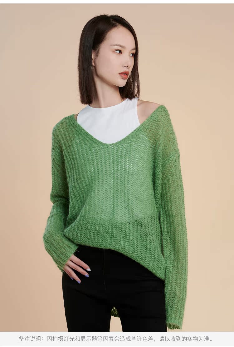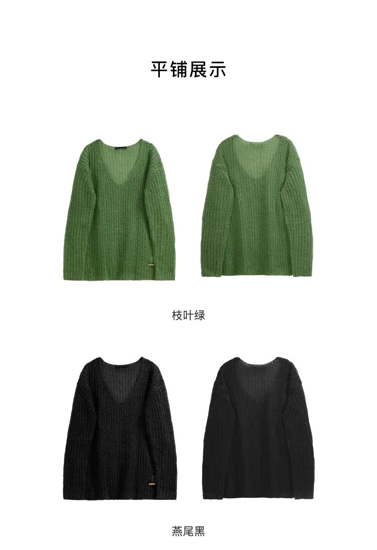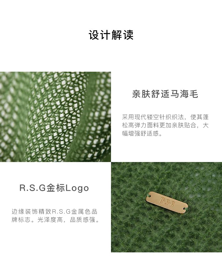 RSG郭培线上成衣品牌纯色V领马海毛简约针织镂空女款毛衣上衣外套