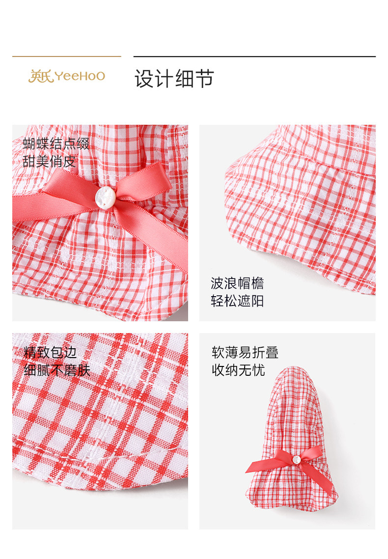 英氏女童渔夫帽夏新款儿童遮阳盆帽轻薄透气防晒帽子YRPJJ2S023A
