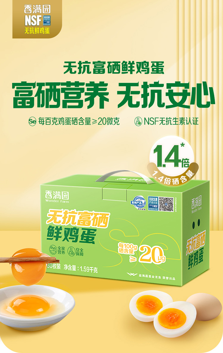香满园富硒鲜鸡蛋1.59kg(珍珠棉托/礼盒)30枚装 -YS