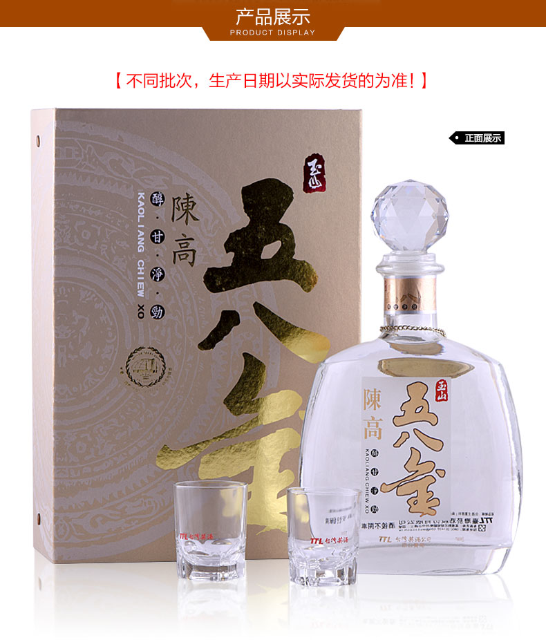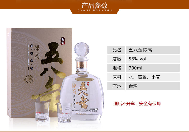 【2012年老酒】台湾原瓶进口58度700ml玉山五八金高粱酒礼盒装 整箱购 更优惠