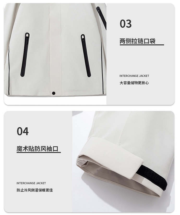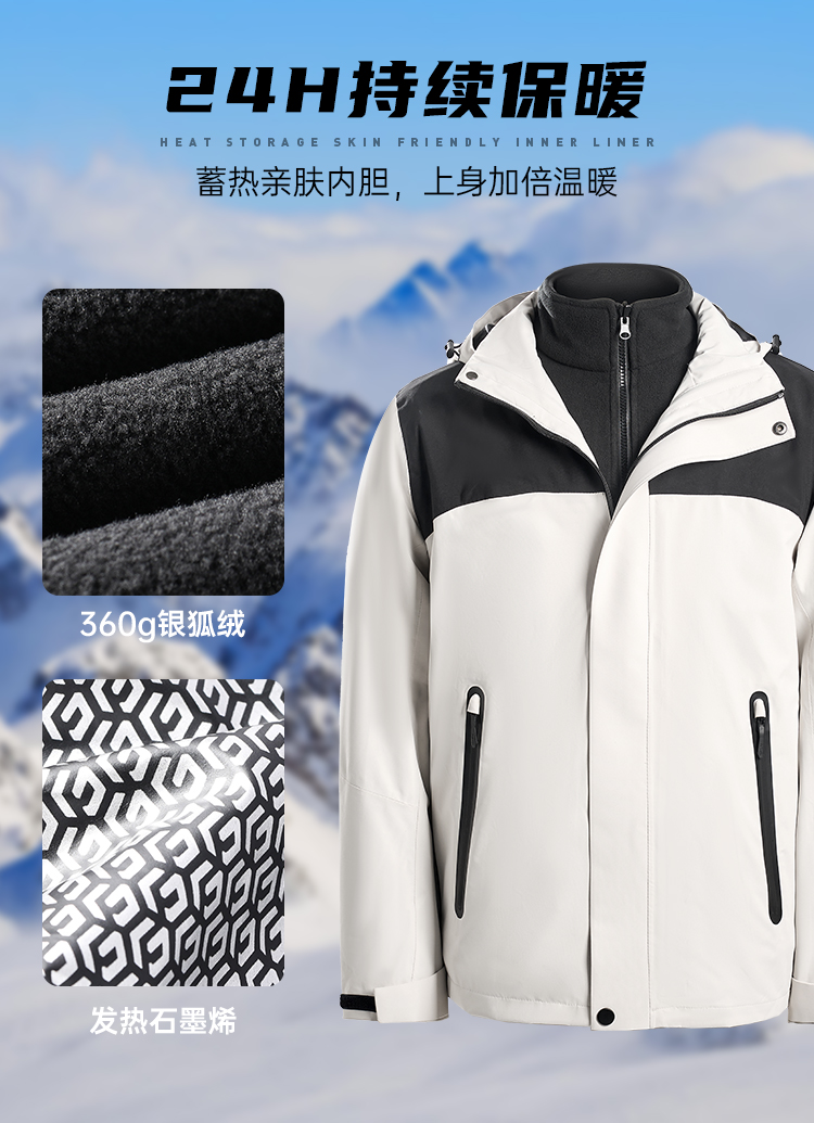 【实付满399送保温杯】【暴雨级防水压胶拉链三合一冲锋衣】发热石墨烯休闲保暖外套 男女同款户外登山服外套FT409