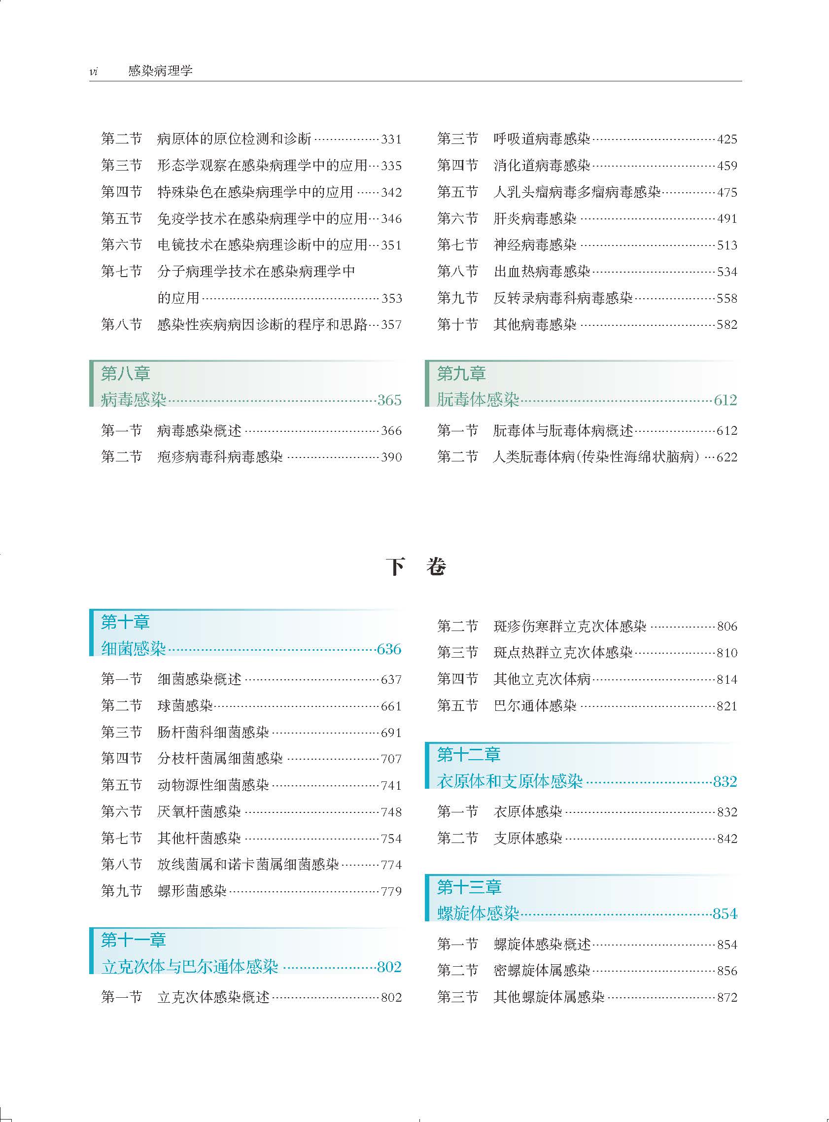Ø 分为两大部分,共16章。第一部分概括性论述感染性疾病的基础理论;第二部分以病原体为主线,阐述各种感染性疾病的病因、发病机制、病理变化及相关临床表现、病理诊断与鉴别诊断。