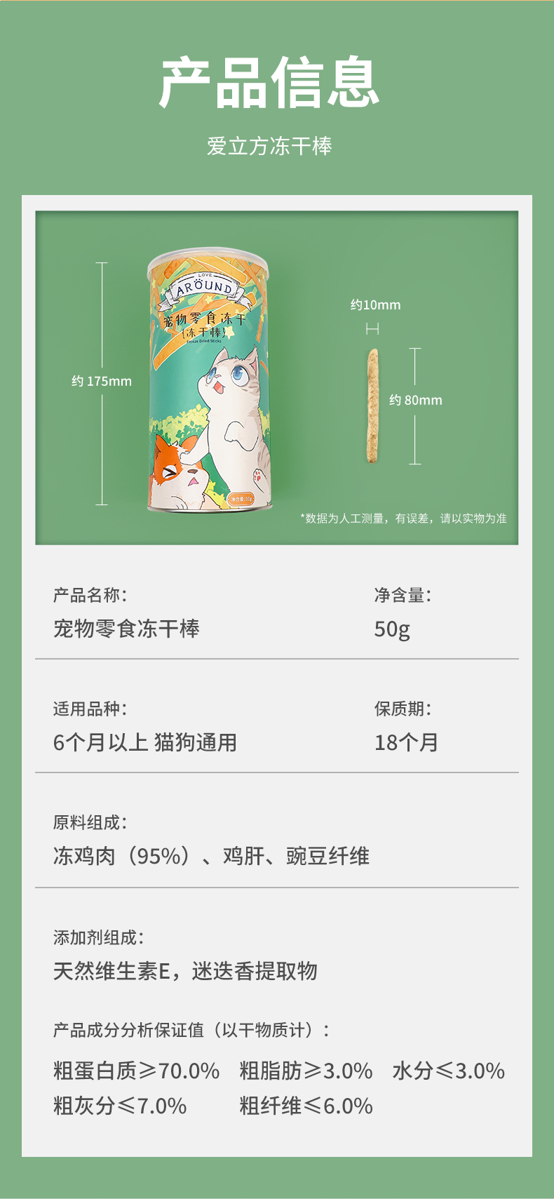 爱立方冻干棒 猫咪零食冻干零食 鸡肉猫磨牙棒