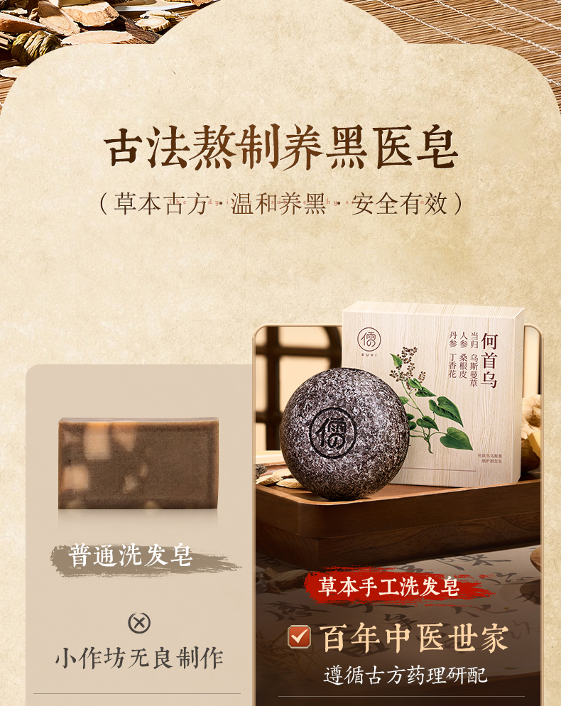 儒意新疆乌斯曼草何首乌五黑乌发手工皂 中药固发防断发控油去屑120g 赠送起泡网