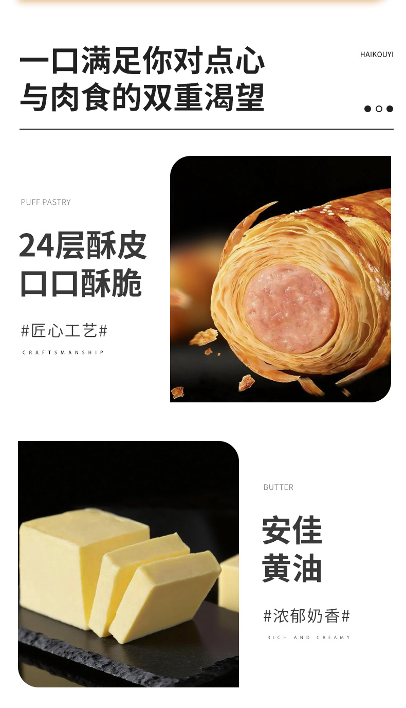 【还口以酥皮烤肠卷】 精选猪后腿肉70%黑猪肉含量 4层手工开酥安佳黄油制作