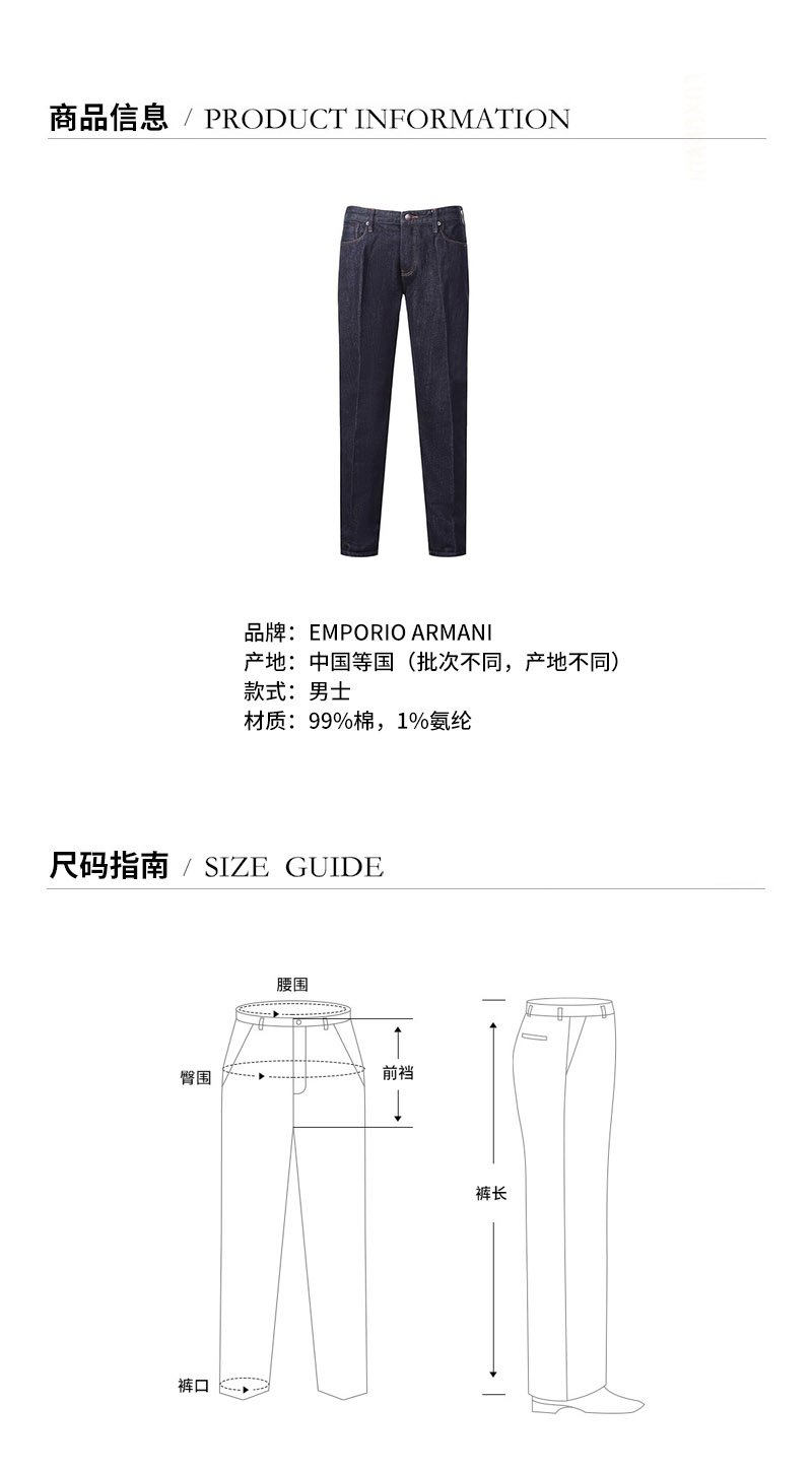 Emporio Armani/安普里奥阿玛尼【22春夏新款】男士棉质修身版牛仔裤长裤 3L1J75 1DJMZ