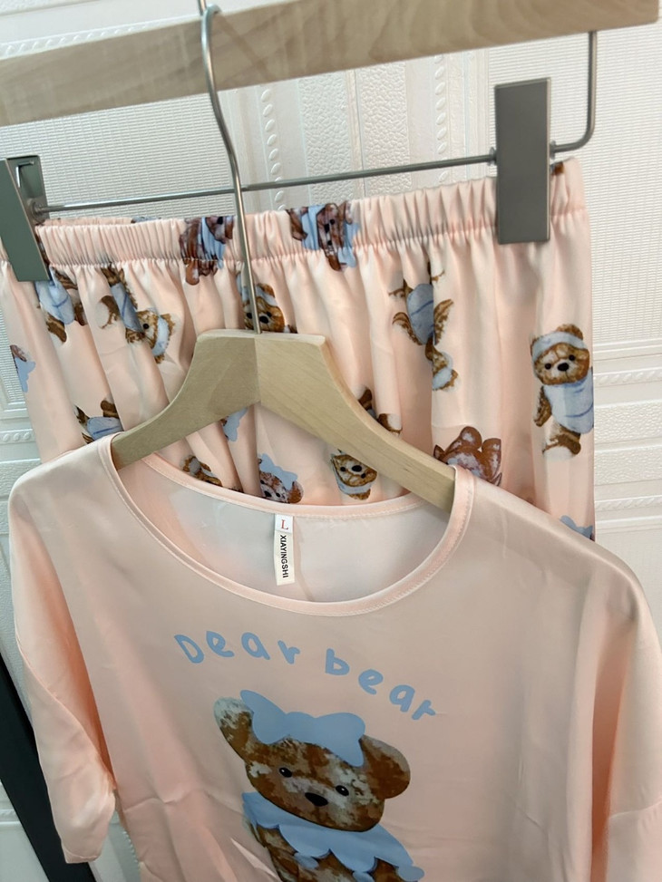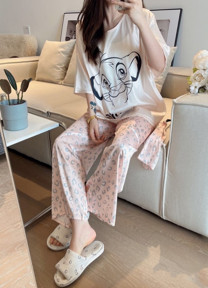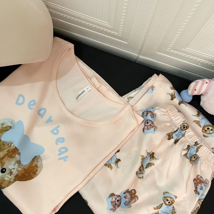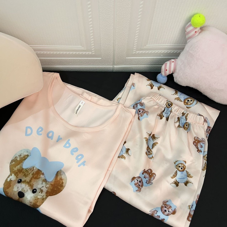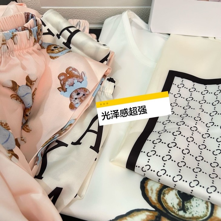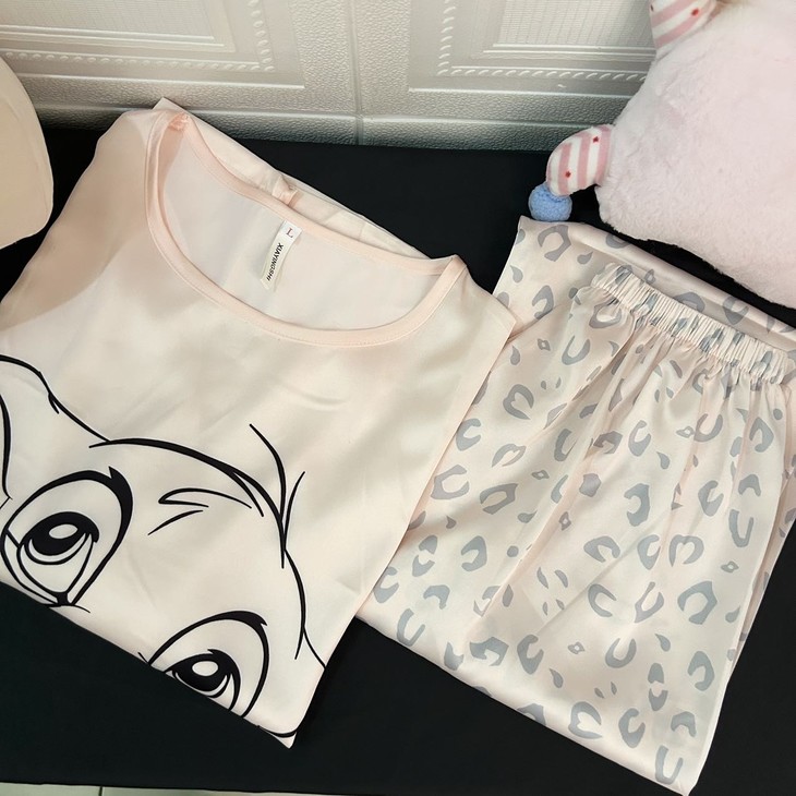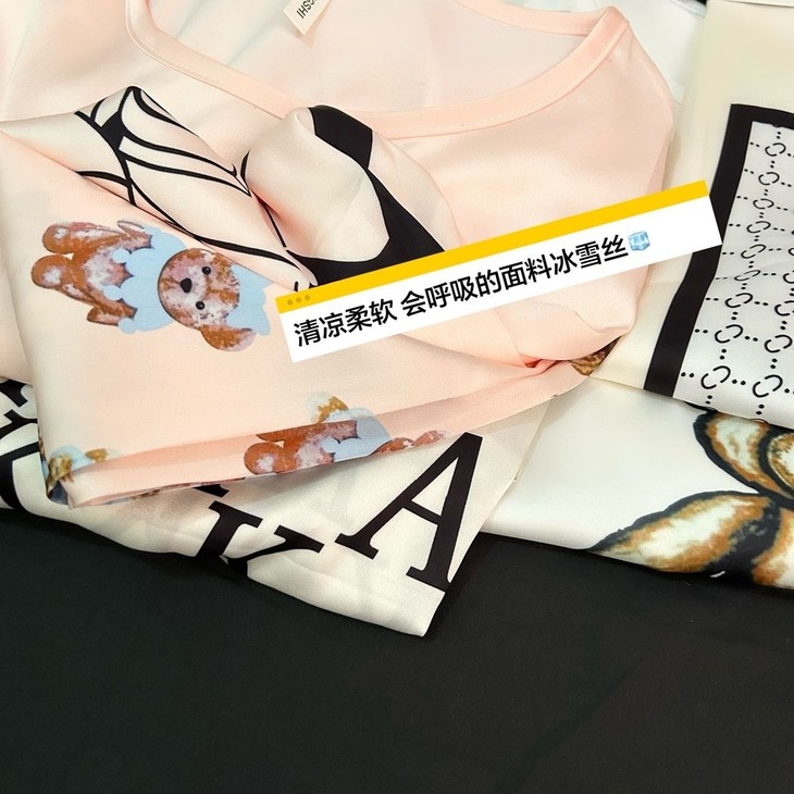 手感高级❗巨柔软冰雪丝❗时尚可直接穿出门~ 🦩舒适清爽冰丝绸缎面料超舒适! 所有敏感肌买它! 真丝一毛一样的手感 贴身软糯丝滑,穿上每天给身体做spa~ 颜值超高的助眠睡衣 满足不同需求~卡通图案增加了童趣感