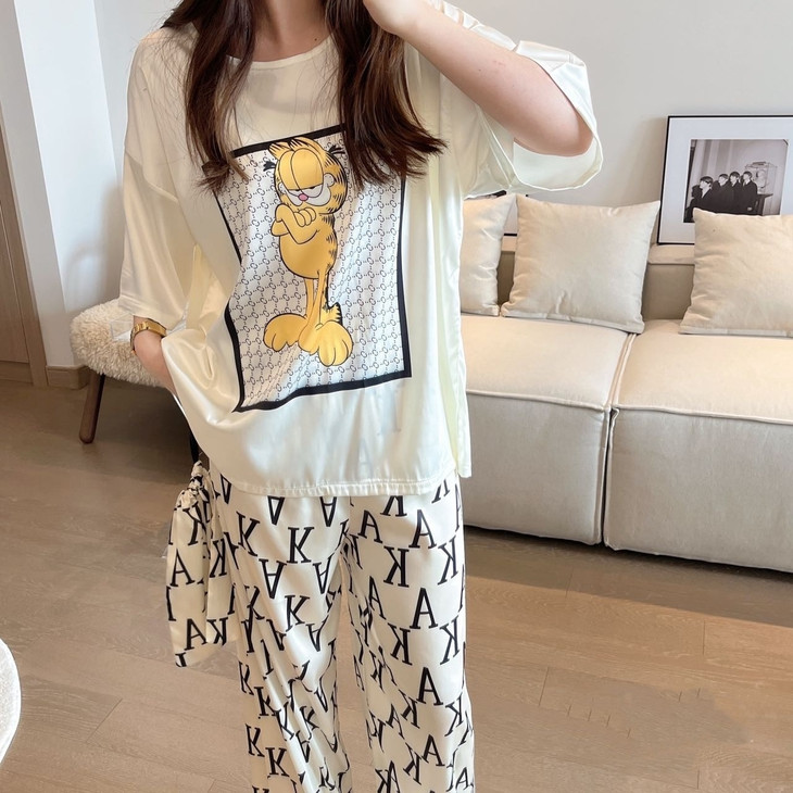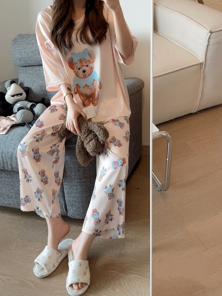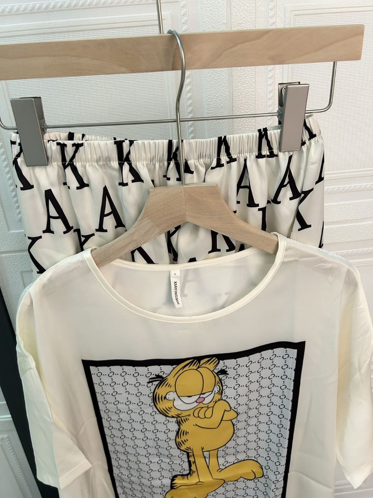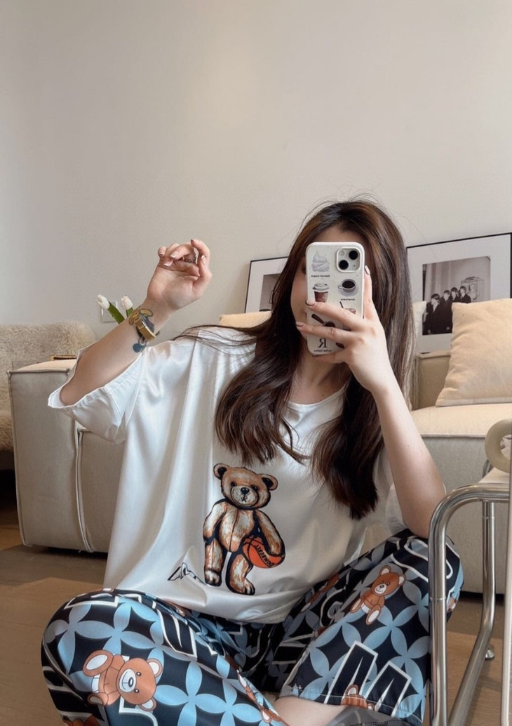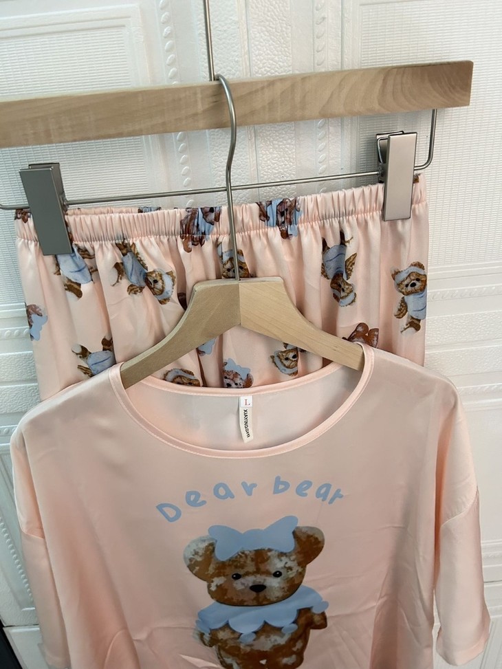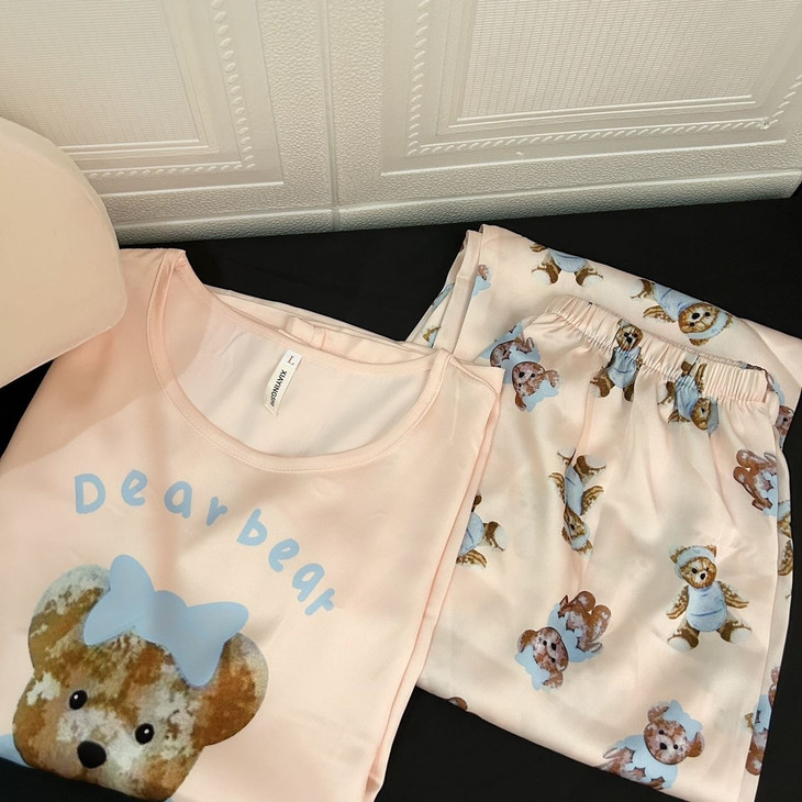 手感高级❗巨柔软冰雪丝❗时尚可直接穿出门~ 🦩舒适清爽冰丝绸缎面料超舒适! 所有敏感肌买它! 真丝一毛一样的手感 贴身软糯丝滑,穿上每天给身体做spa~ 颜值超高的助眠睡衣 满足不同需求~卡通图案增加了童趣感