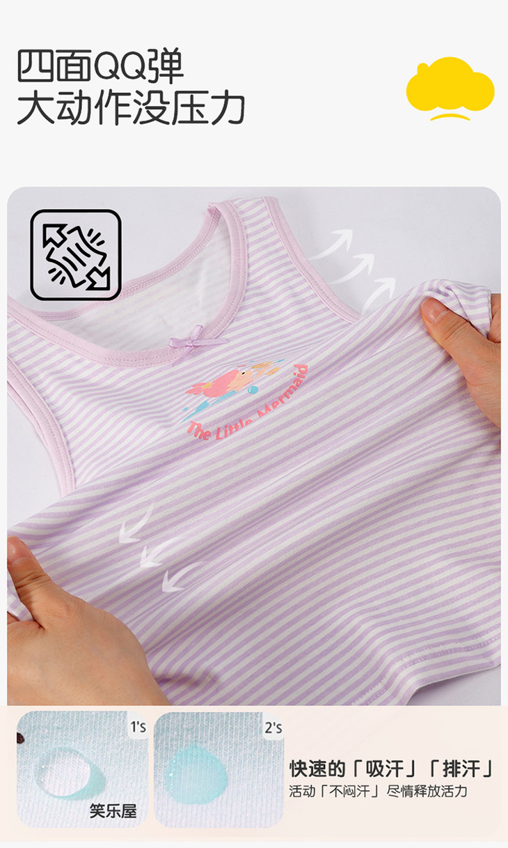作为孩子的“第二层肌肤” 好的儿童背心必须拥有自然的舒适感 直接接触宝宝柔嫩的肌肤 面料一定要选安全、柔软舒服的