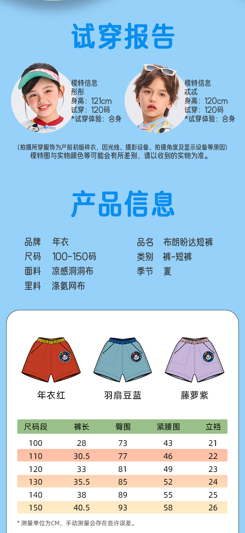 年衣童装2025新款休闲裤百搭运动五分裤布朗盼达短裤