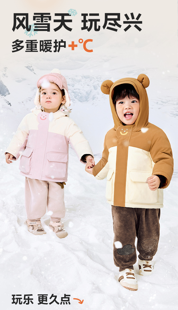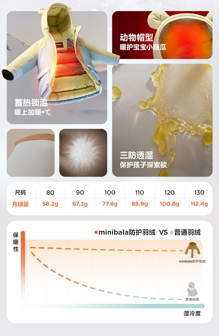 【三防透湿】迷你巴拉冬儿童发热羽绒服宝宝厚款保暖羽绒外套