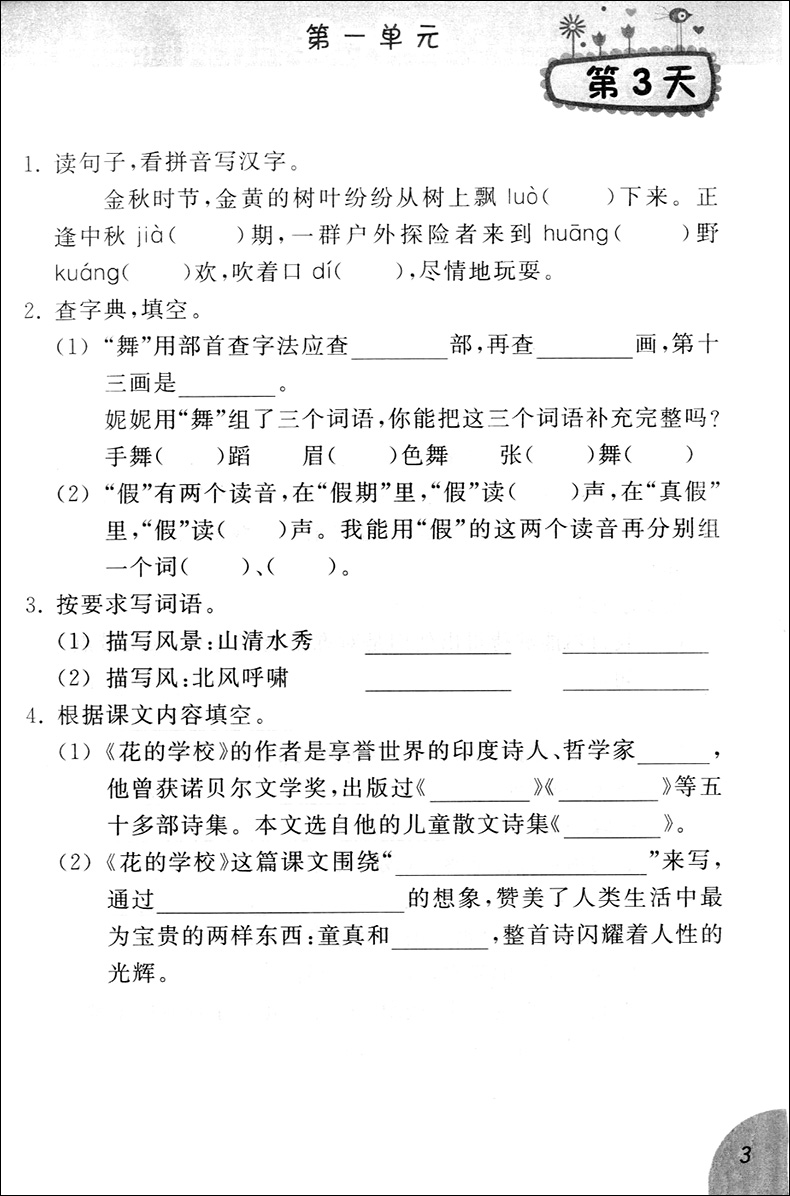 部编版 小学语文字词句基础训练 3年级上册/三年级第一学期 语文 统编本上海小学配套教辅小学生课外学习资料