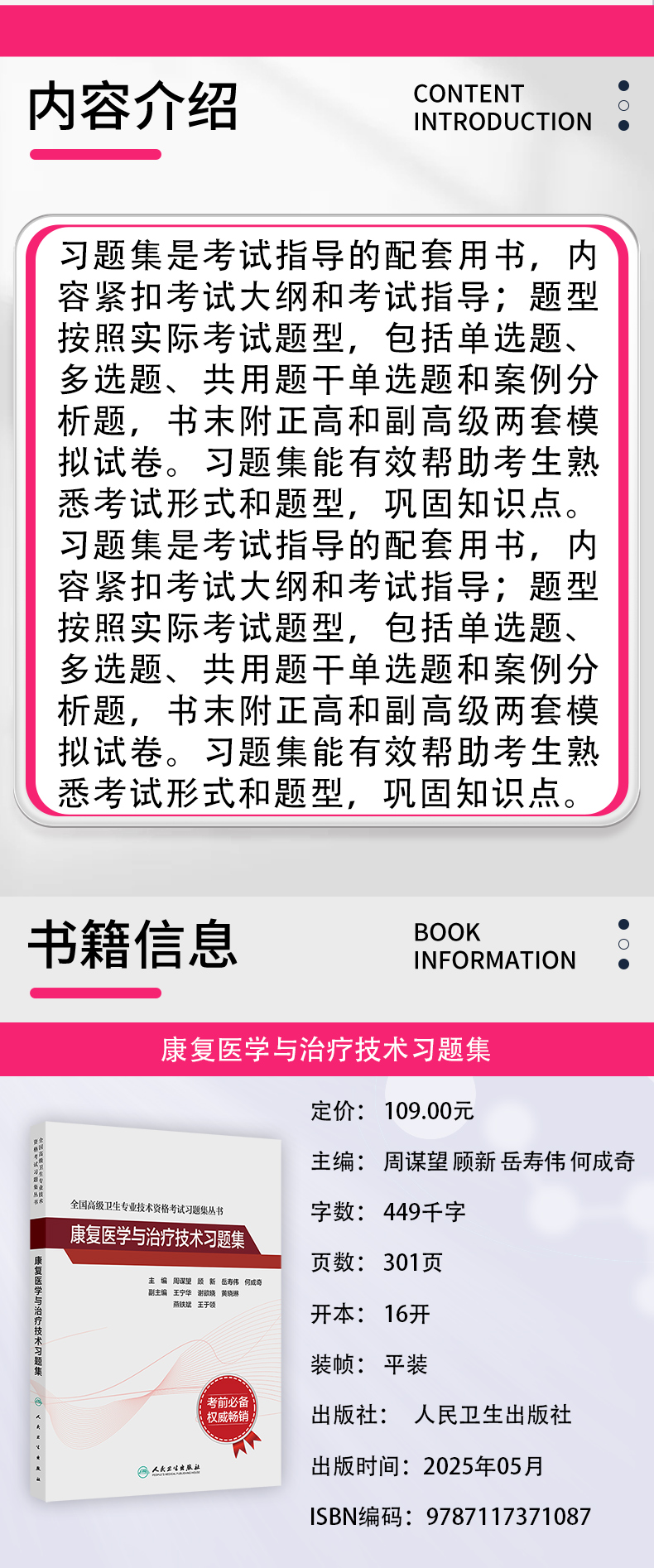 康复医学与治疗技术习题集 全国高级卫生专业技术资格考试习题集丛书 高级职称考试 周谋望 顾新 岳寿伟 何成奇 人民卫生出版社