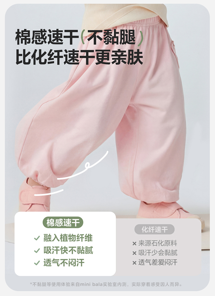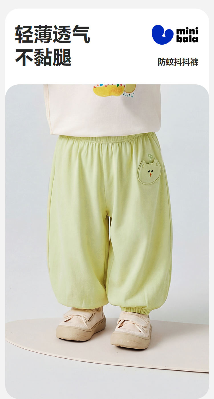 迷你巴拉男女童宝宝裤子2026春季吸湿速干透气凉感抑菌防蚊裤长裤