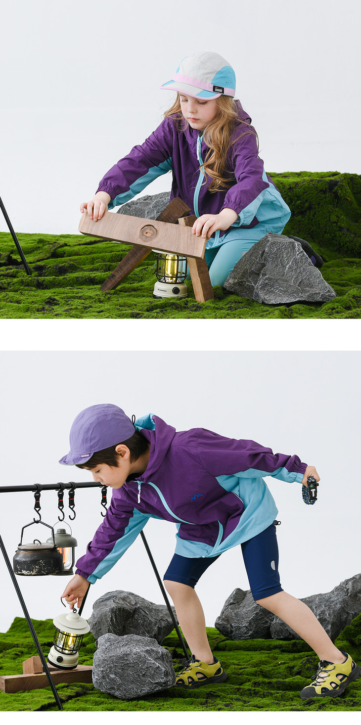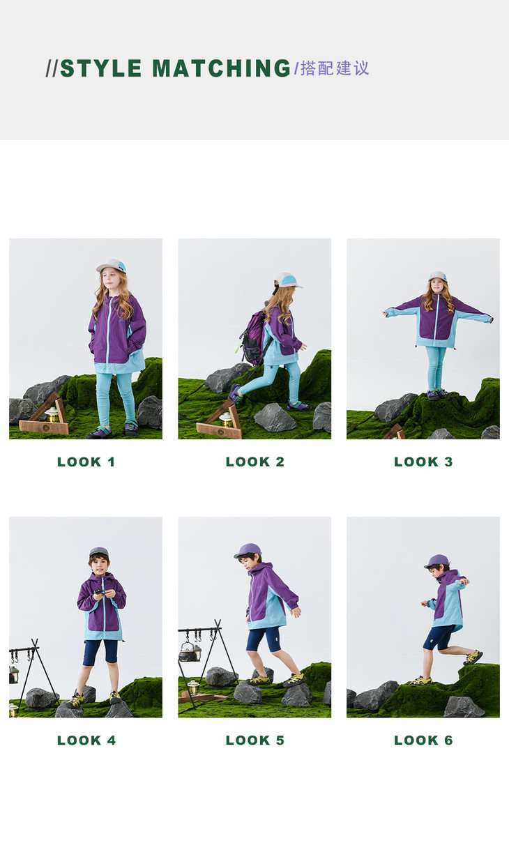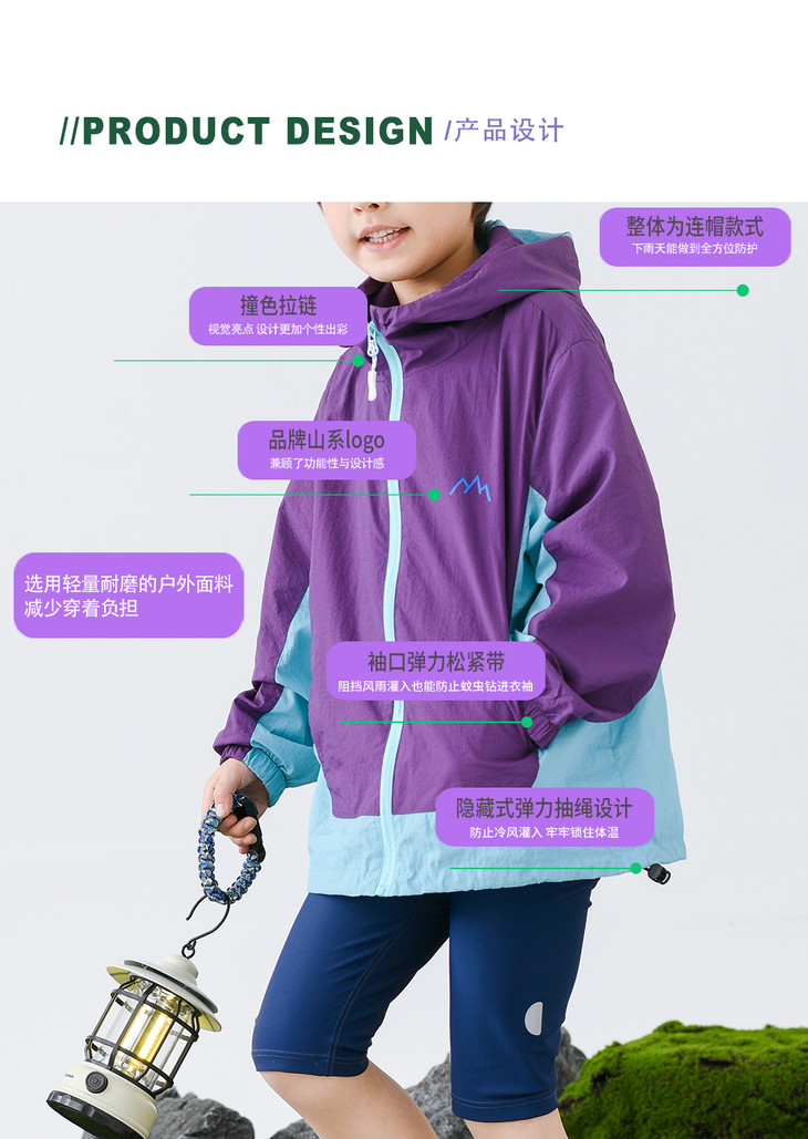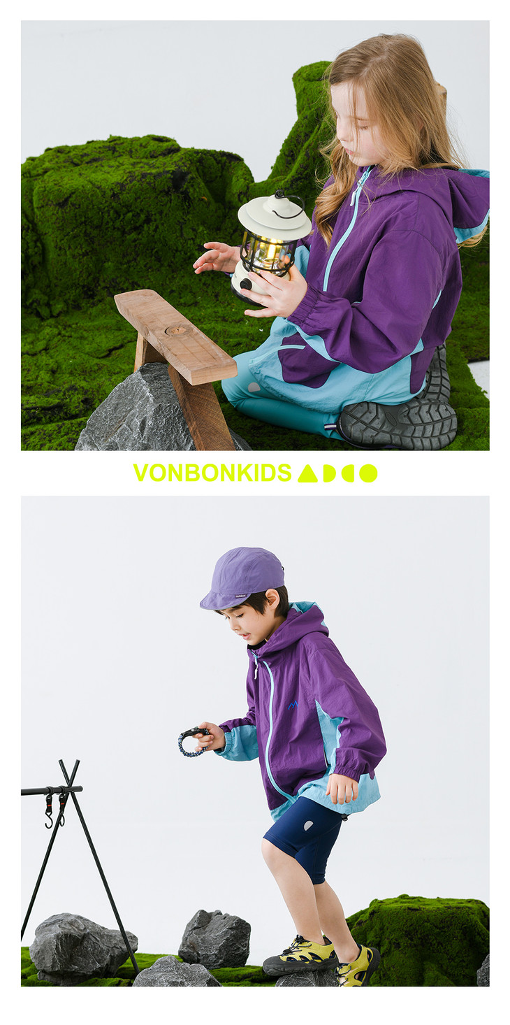 🌈【vonbonkids 山系软壳户外露营锦纶防水速干连帽登山服K07C25118款】 ✅ 锦纶防水速干面料:轻量透气,💥微雨天气也能从容应对,出汗后快速干爽不粘身