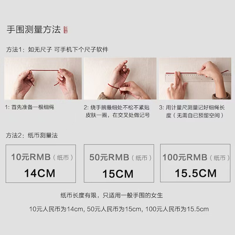 温馨提示:手串大小是固定尺寸,建议您下单之前测量手围,避免收到货佩戴不合适~