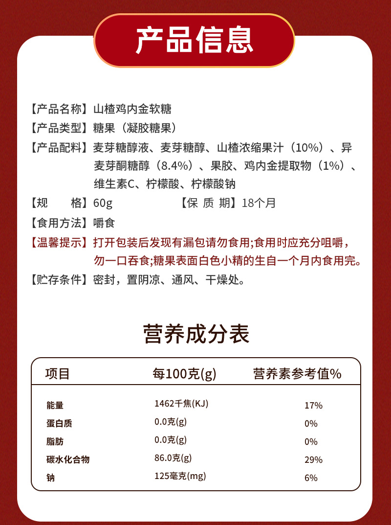 【儿康堂育儿】英贝健山楂鸡内金软糖60g/瓶,到手4瓶