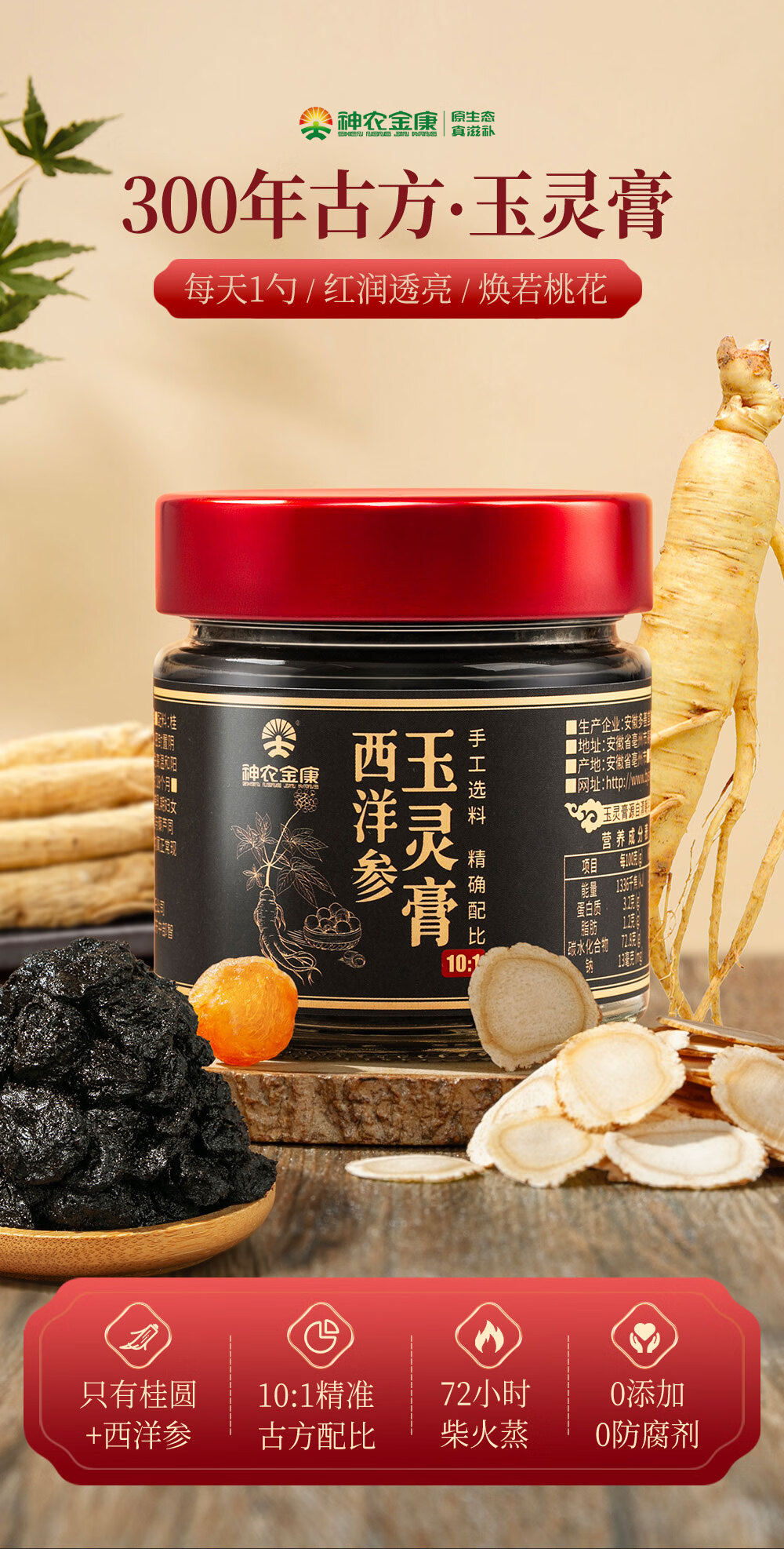 神农金康 西洋参玉灵膏220g/罐(老方10:1 )建议吃3个月 原生态真滋补 喝护家人健康