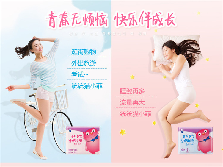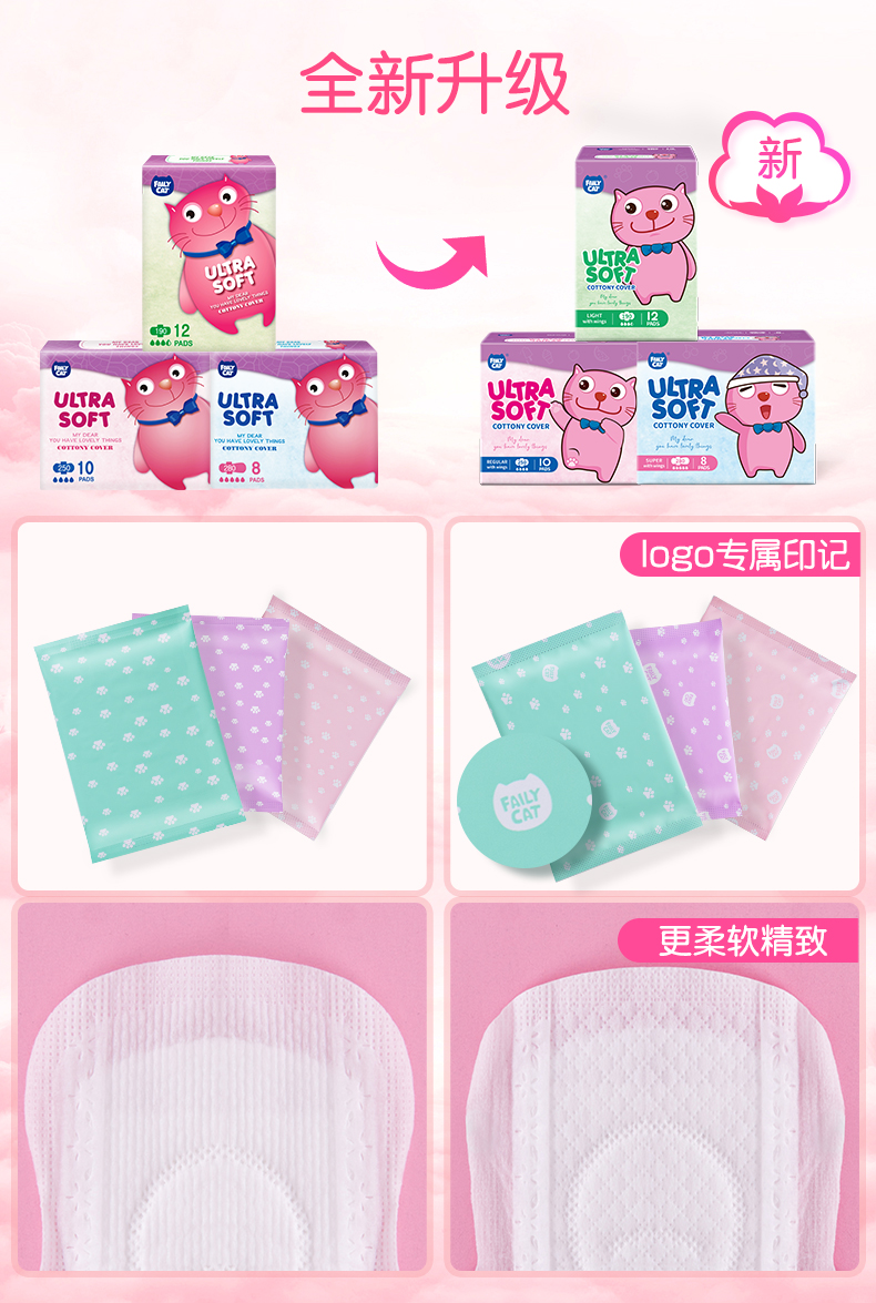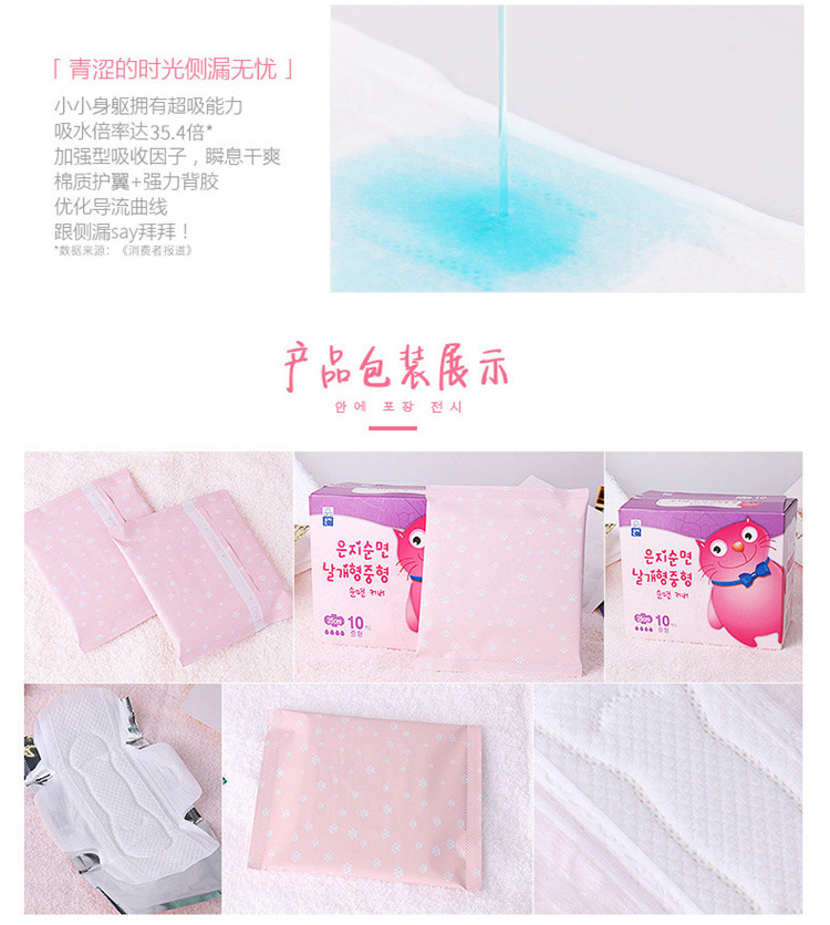 【中欧班列精选】恩芝猫小菲卫生巾纯棉日用夜用姨妈巾超薄抑菌护垫迷你巾