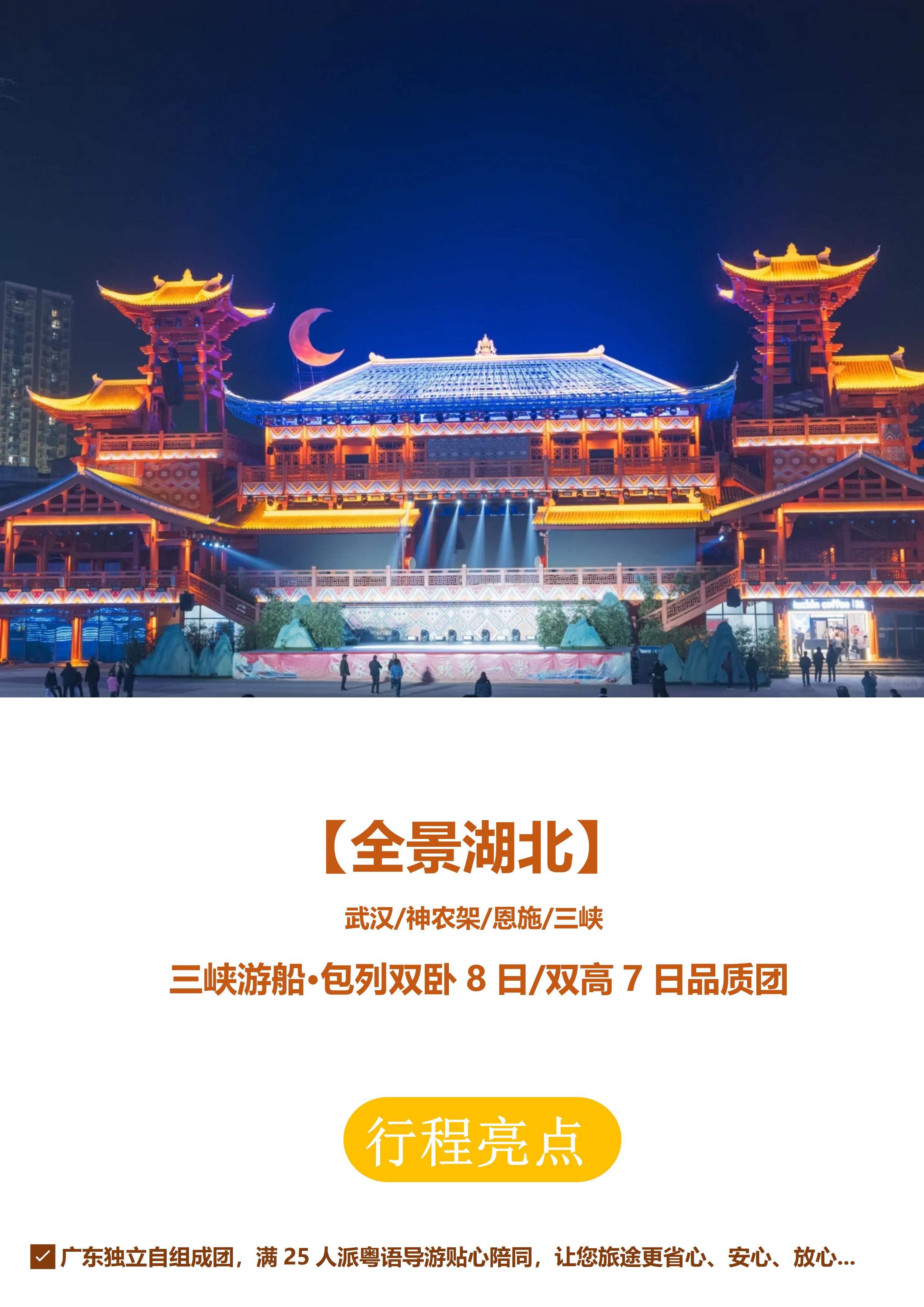 【全景湖北】三峡游船•包列双卧8日/双高7日品质团
