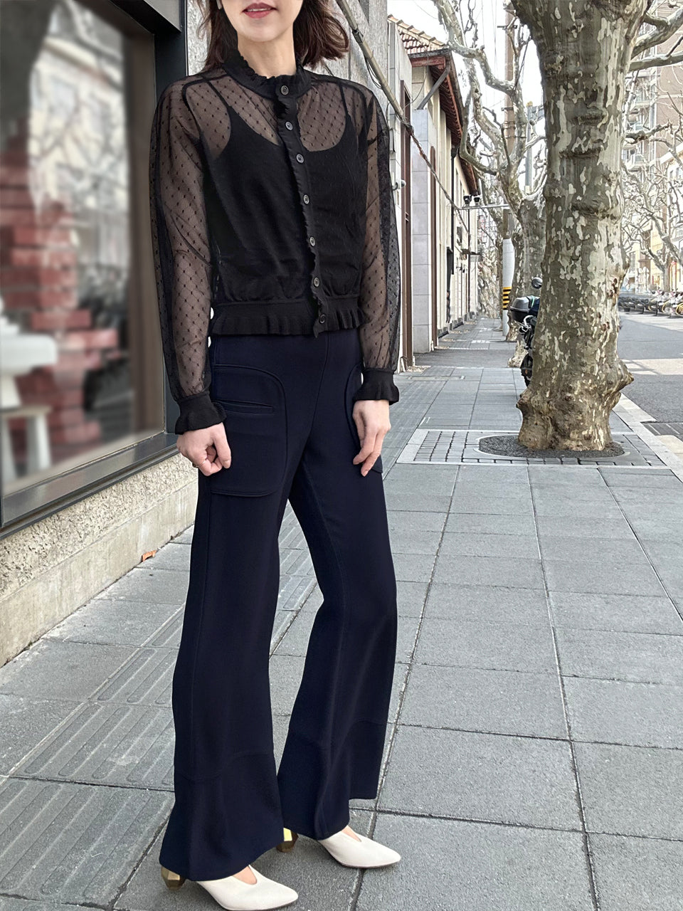 TYNVIE 针织围边拼蕾丝开衫