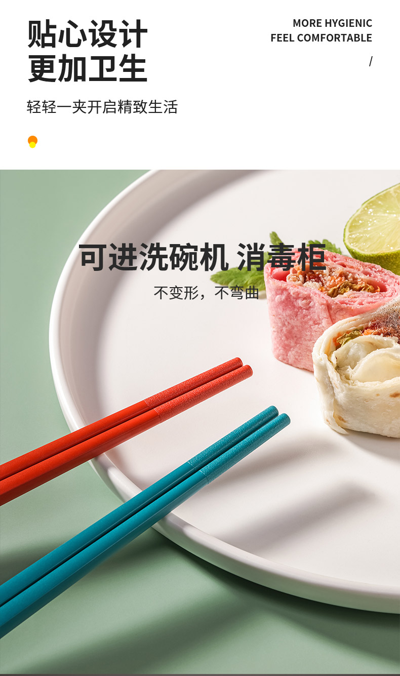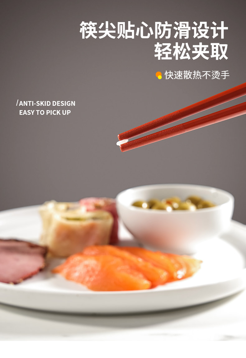 5.笔直的方形筷身,比其他材质都更防滑,筷尖添加了磨砂纹理,很防滑~