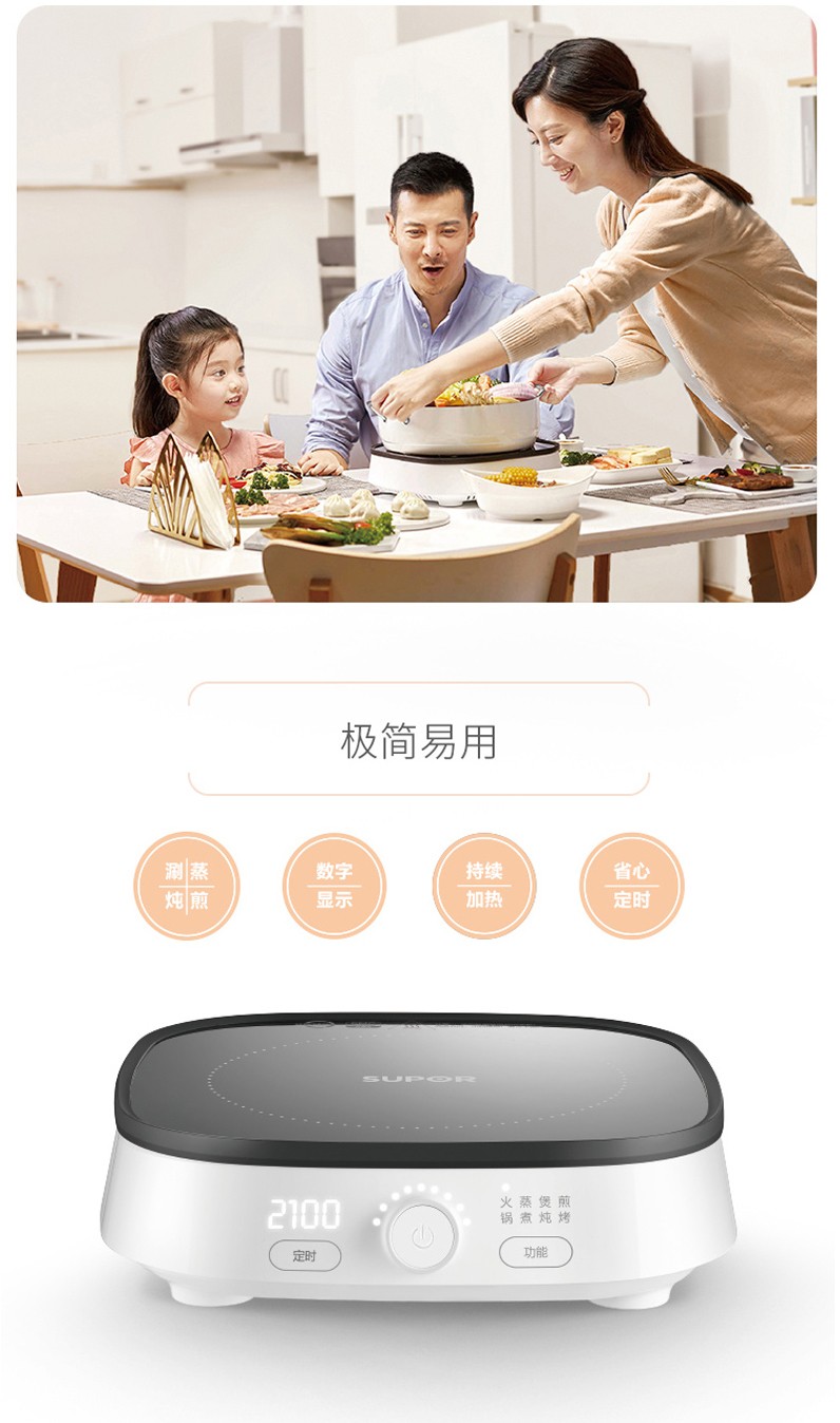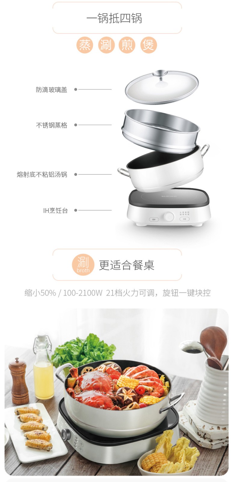 苏泊尔(SUPOR)电磁炉涮蒸炖煎 自动功能 一键切换 多功能爆炒电磁炉火锅一体炉灶C21-IC23