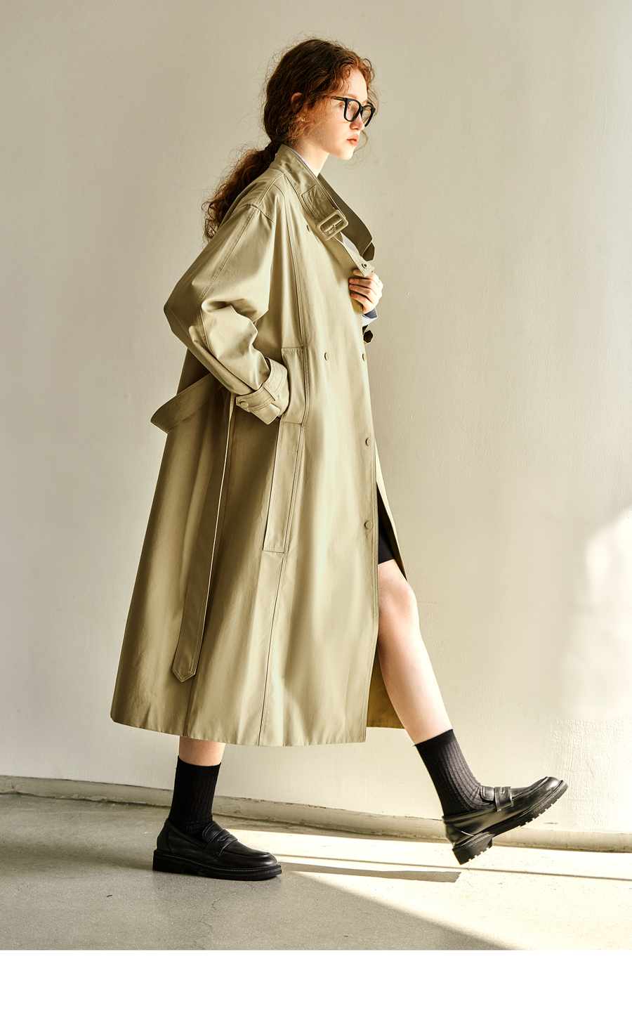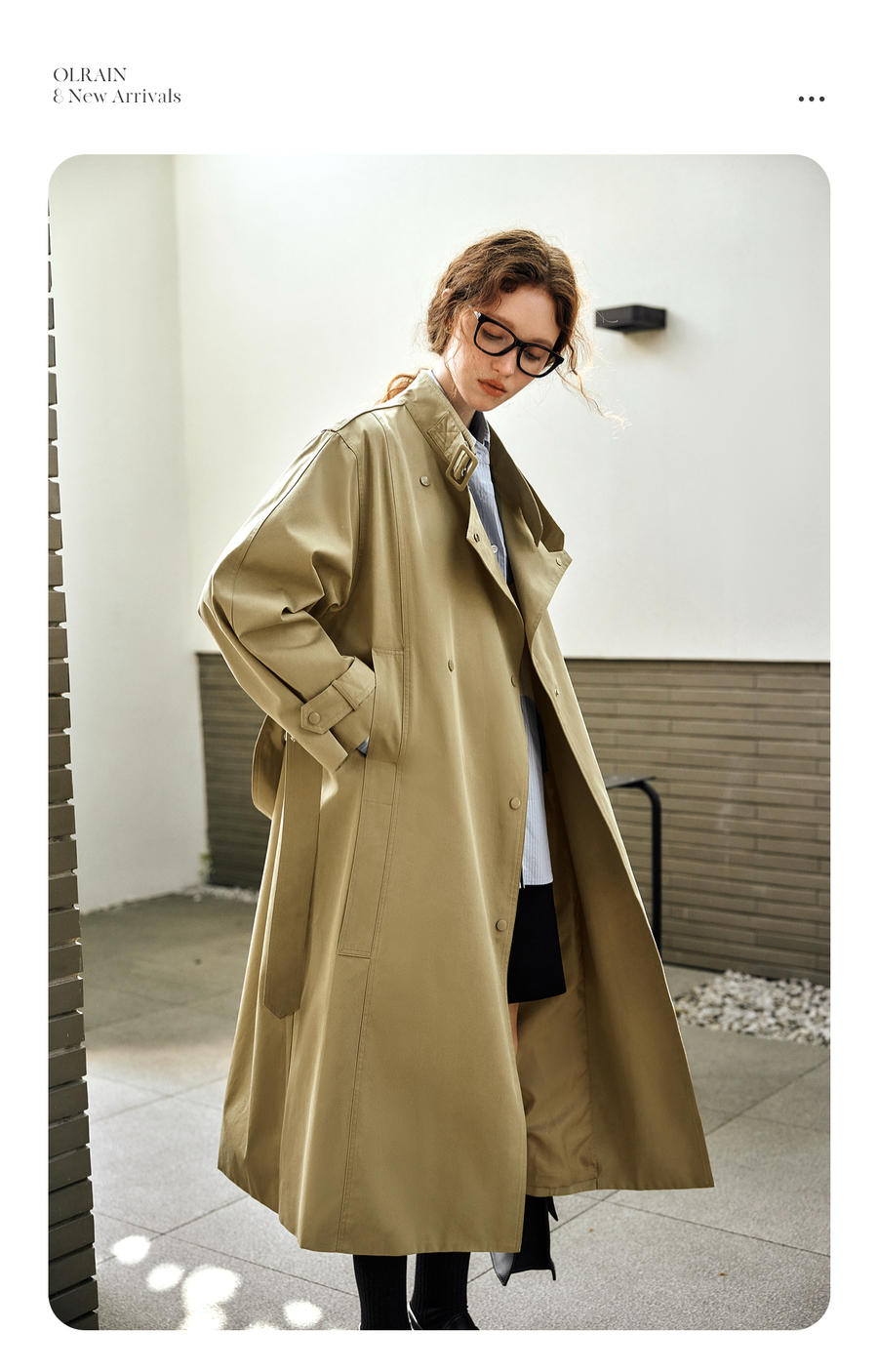 OLrain欧芮儿卡其色中长款风衣女秋季2025新款时尚通勤英伦风外套