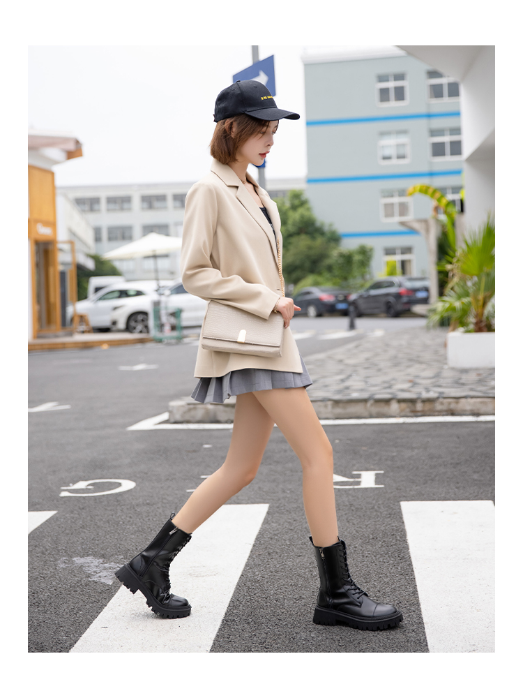 safiya索菲娅黑曜骑士时装靴新款双拉链马丁靴女鞋SF04116321