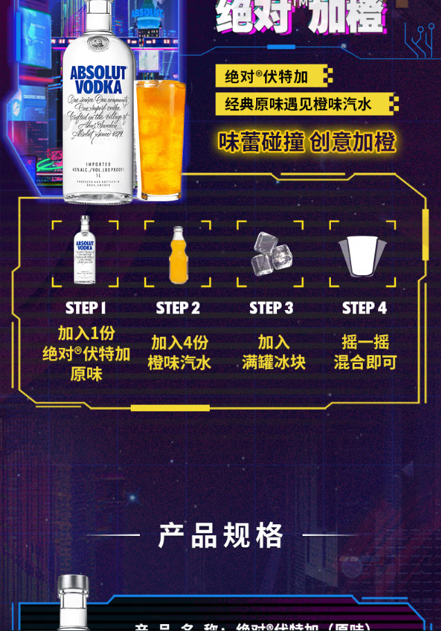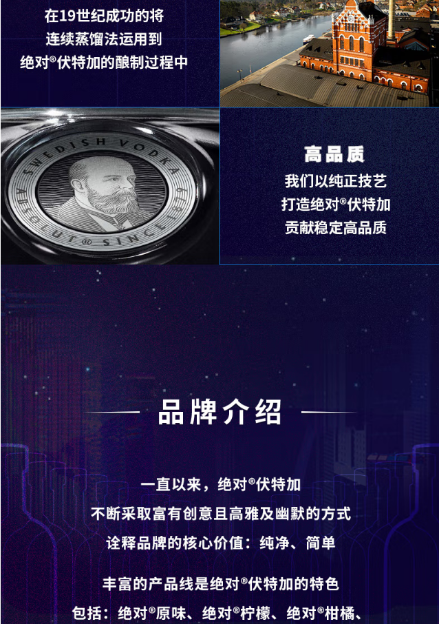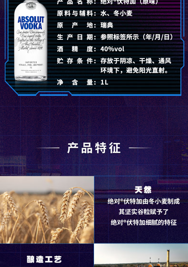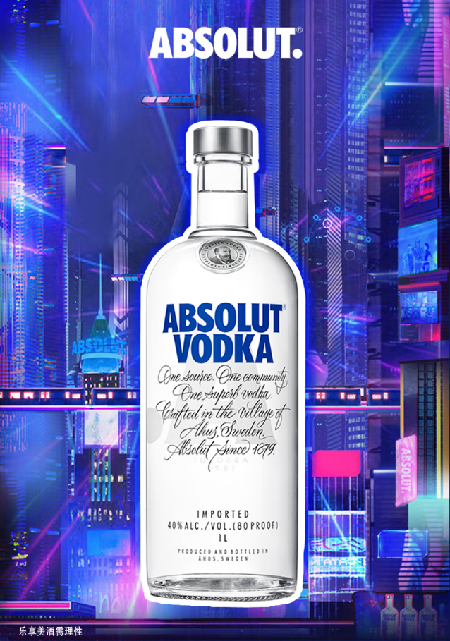 瑞典绝对伏特加洋酒原味 40度1L*1瓶/2瓶