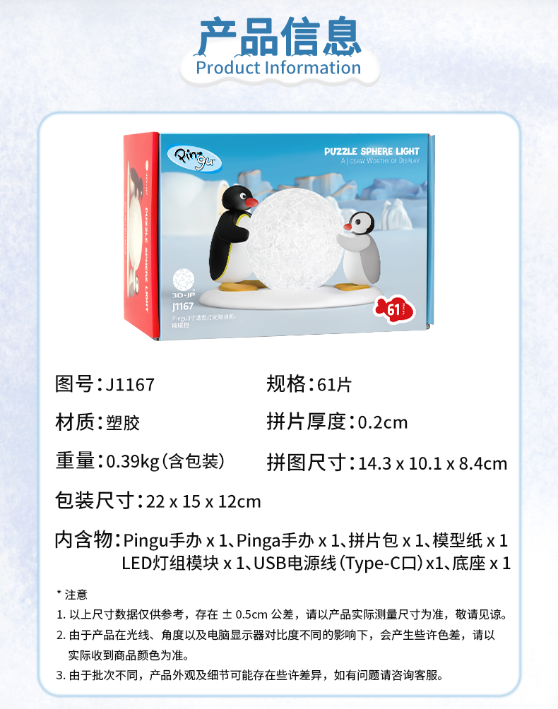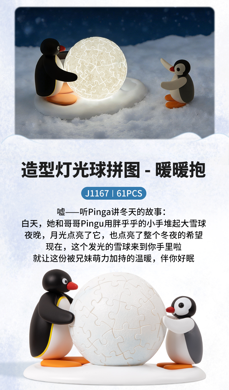 61片 J1167 Pingu3寸造型灯光球拼图 暖暖抱