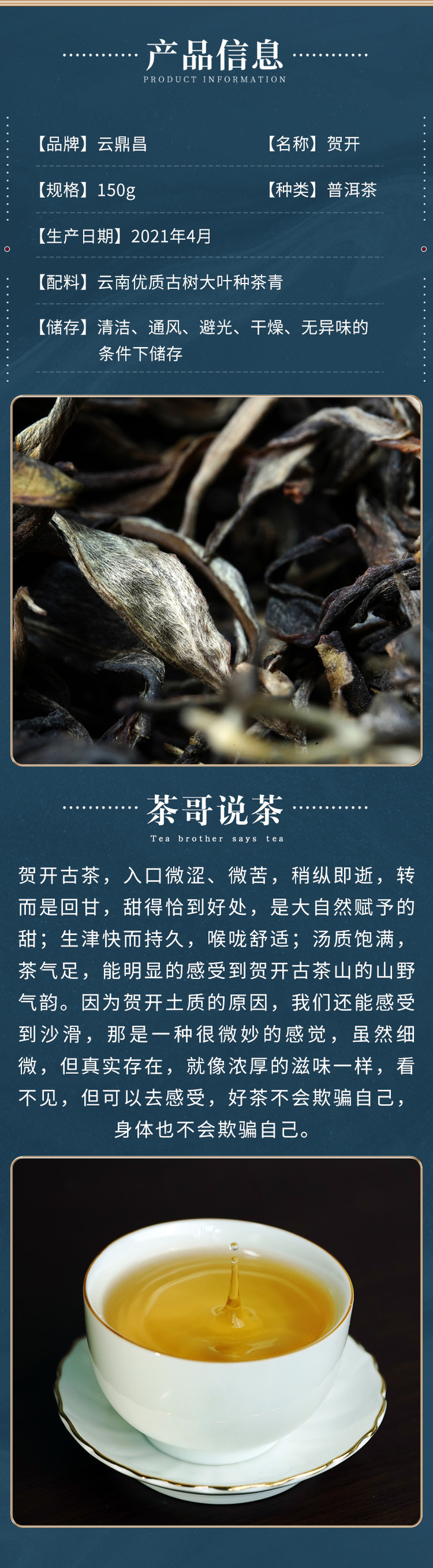 【贺开散茶】2021年普洱茶生茶云南勐海300年古茶纯料散茶150g/罐