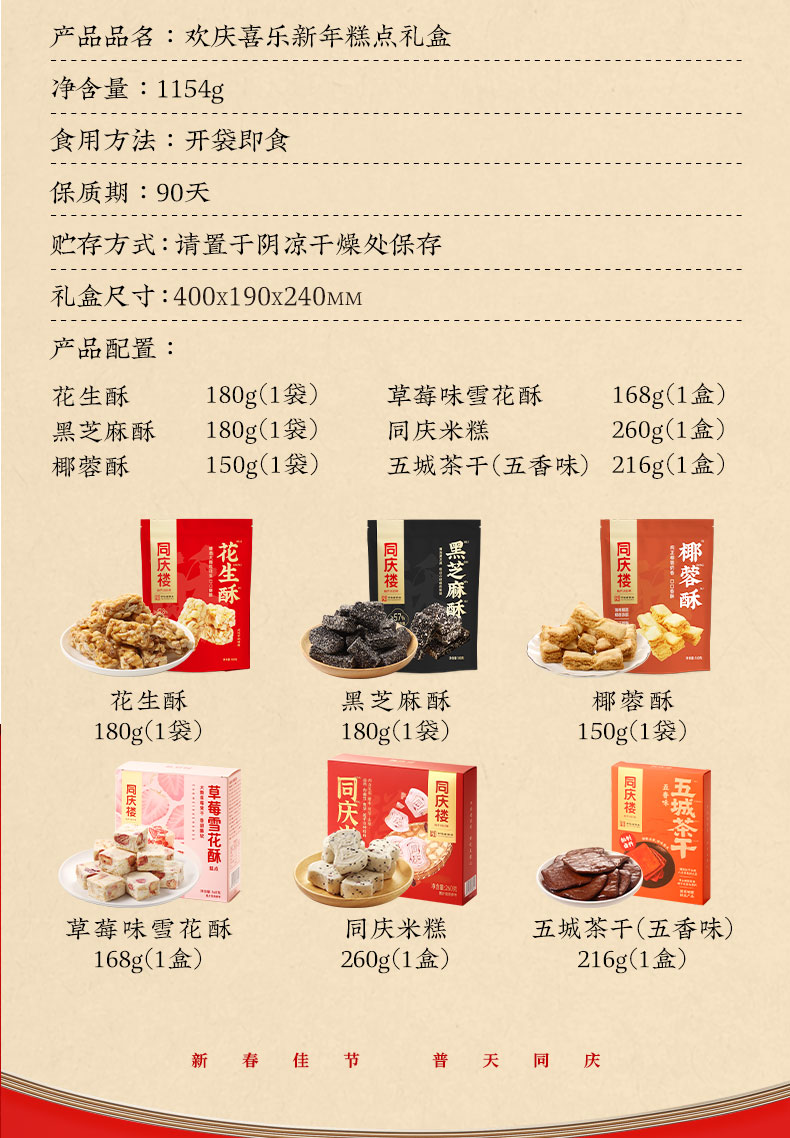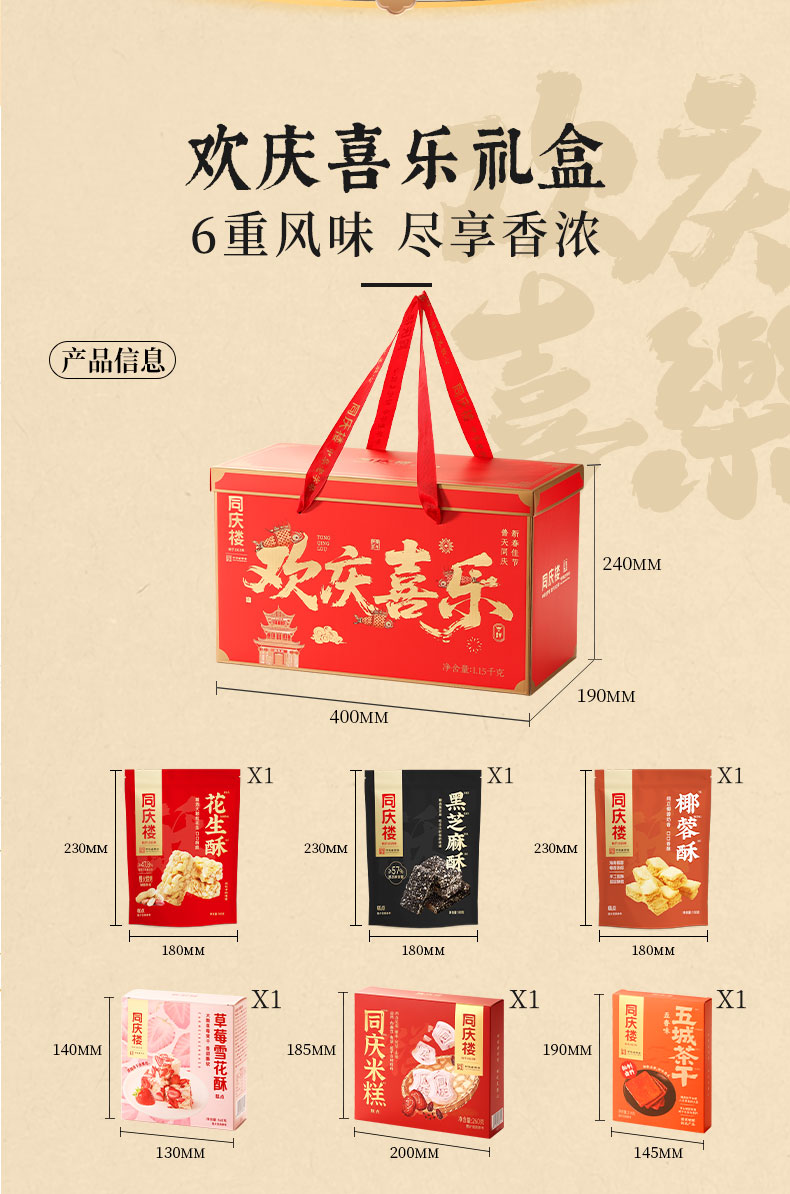 同庆楼 欢庆喜乐礼盒 1.154kg 六重风味 净享香浓 特色糕点小吃 新年糕点礼盒 48小时发货