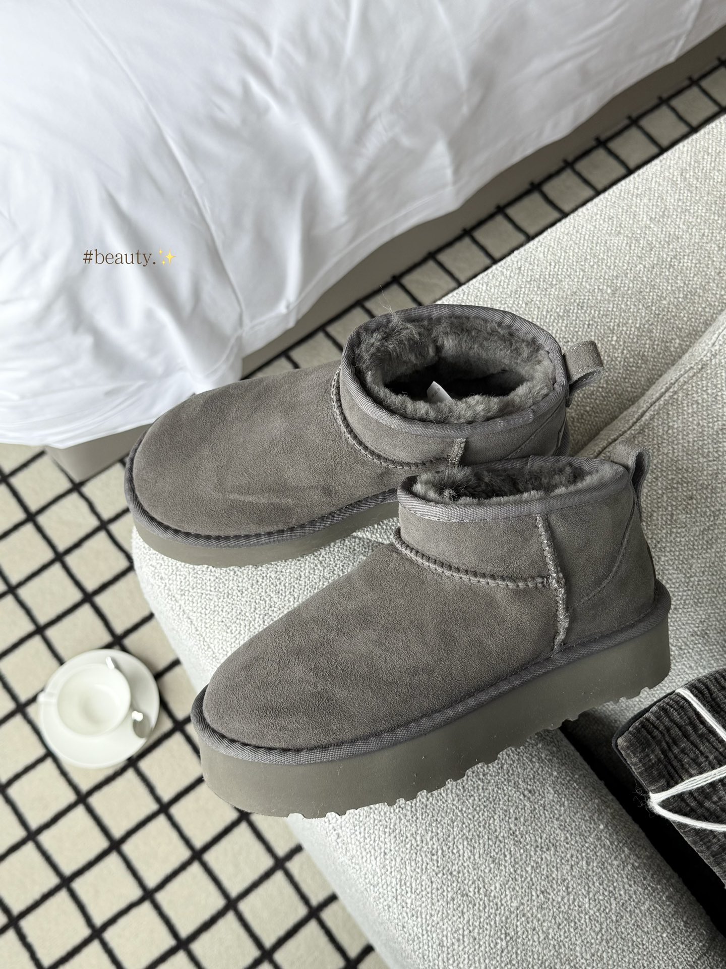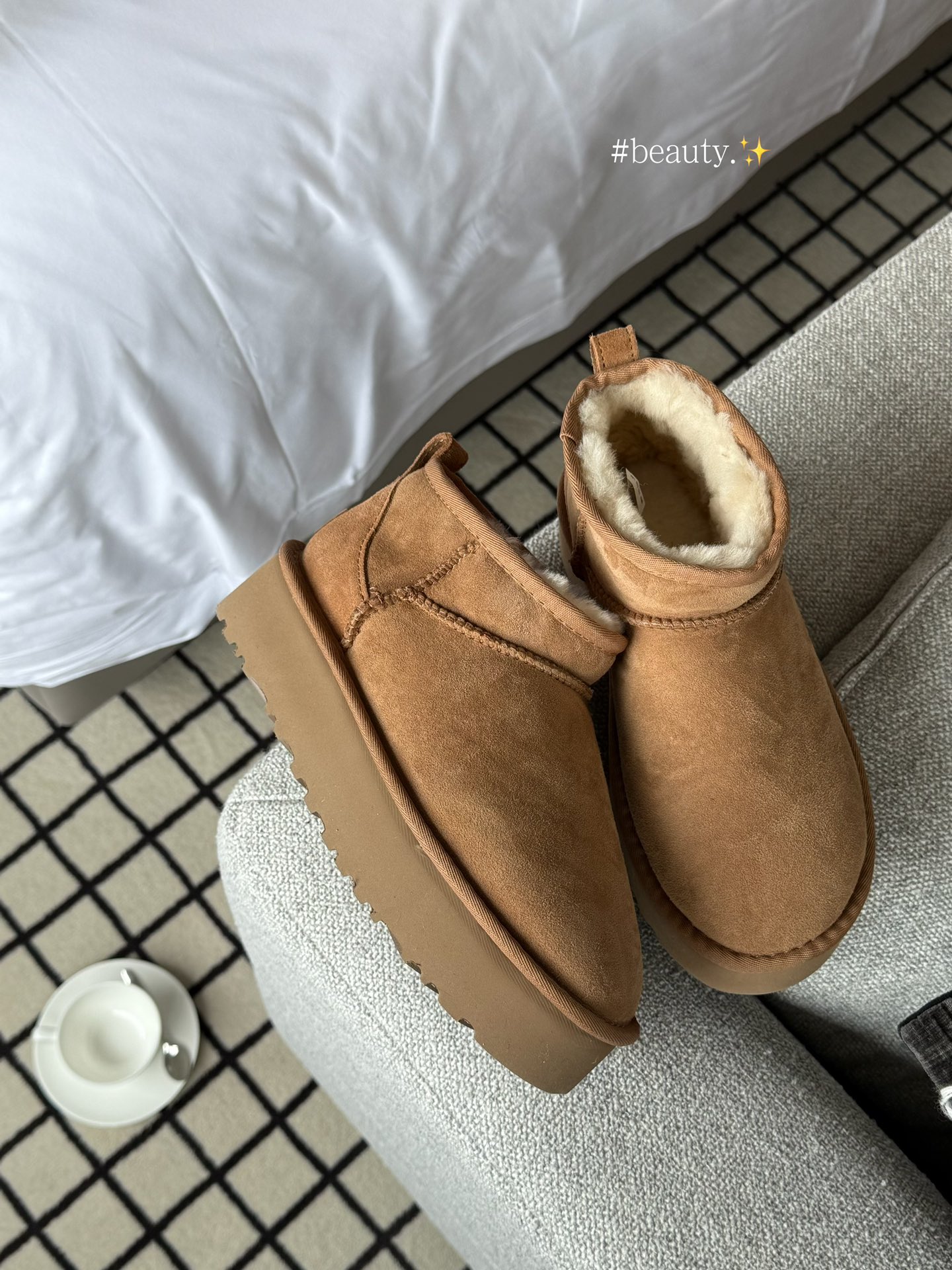 【全球第二好的】UGG 三厘米周冬雨 秋冬季节的热门单品,其保暖性和时尚感深受大家喜爱。厚底款式能增加身高,还带有复古与潮流感,鞋面采用羊皮毛一体等材质,内里填充柔软绒毛,既舒适又温暖