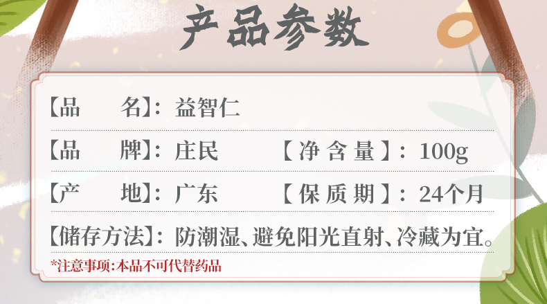 庄民 益智仁 精选好货益智子 益智仁茶100g/罐