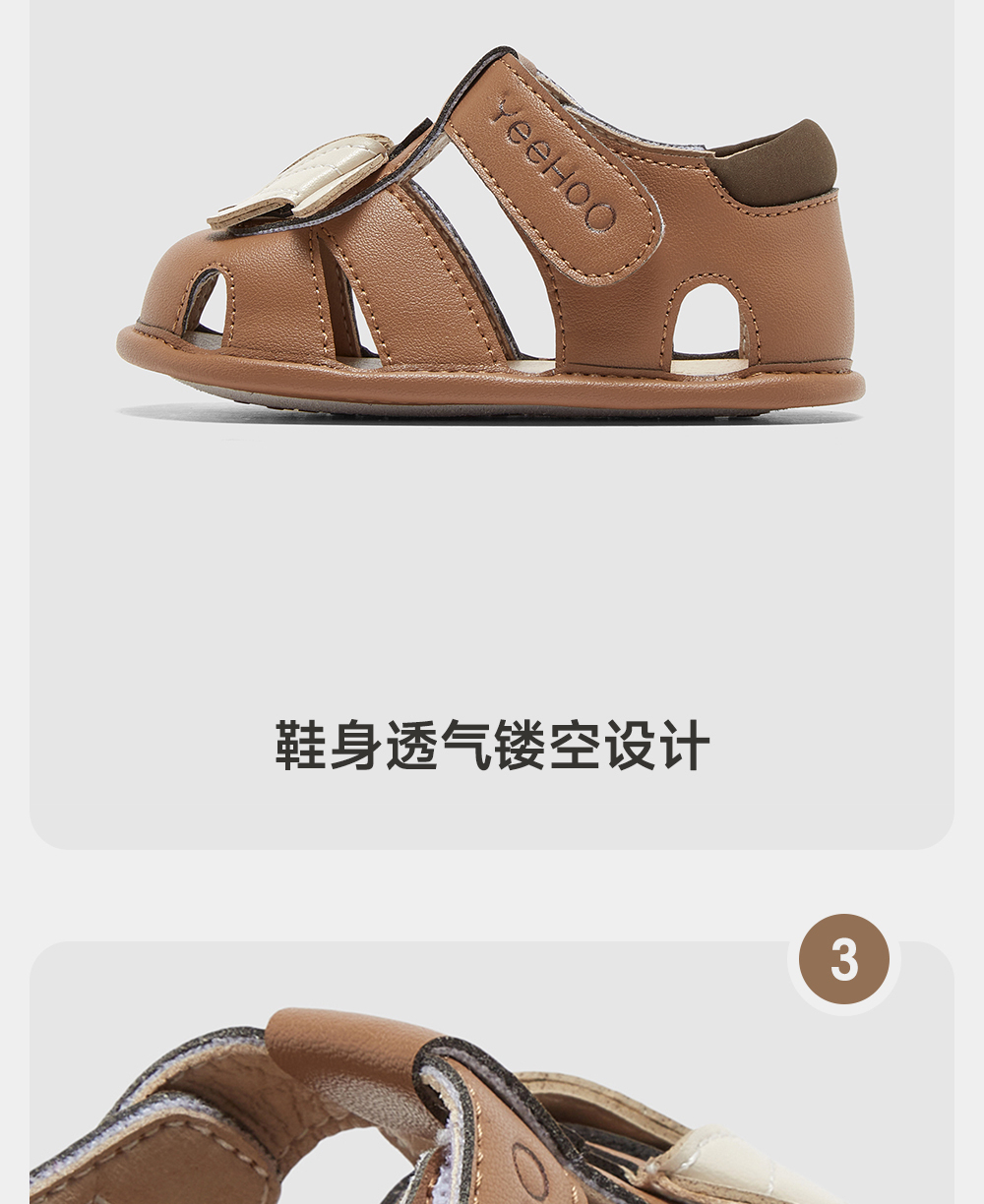 英氏儿童鞋透气男童女童防滑步前鞋2024新款凉鞋YFXFJ2Q025A