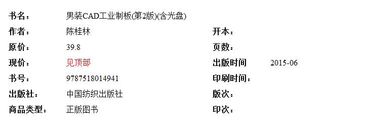 男装CAD工业制板(第2版十二五职业教育国家规划教材) 陈桂林 编著 著作 大学教材大中专 新华书店正版图书籍