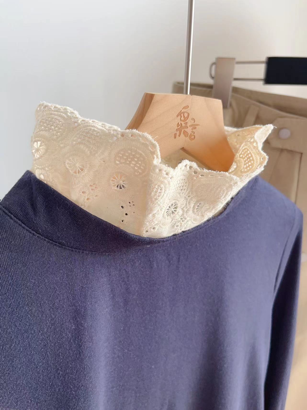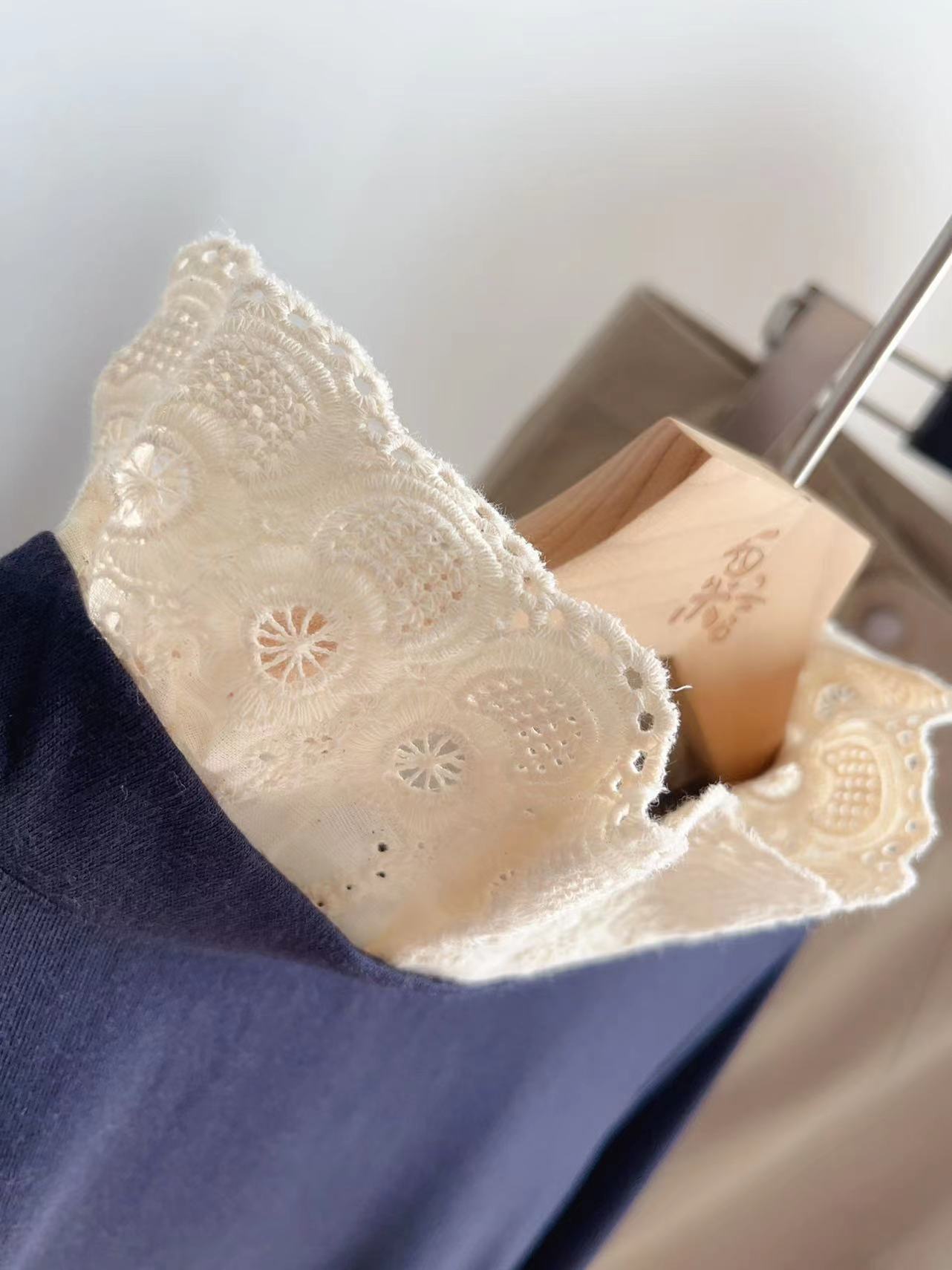 这一单是跟着日本订单做的,设计也是日本的。就这么一批,这种刺绣花边打底衫,真的是很日杂风了!菇凉们都知道它有多实穿!叠搭在卫衣啦,毛衣啦,外套里面,露出精致的花边和下摆,看起来不经意,却让你的穿搭不再平庸~~